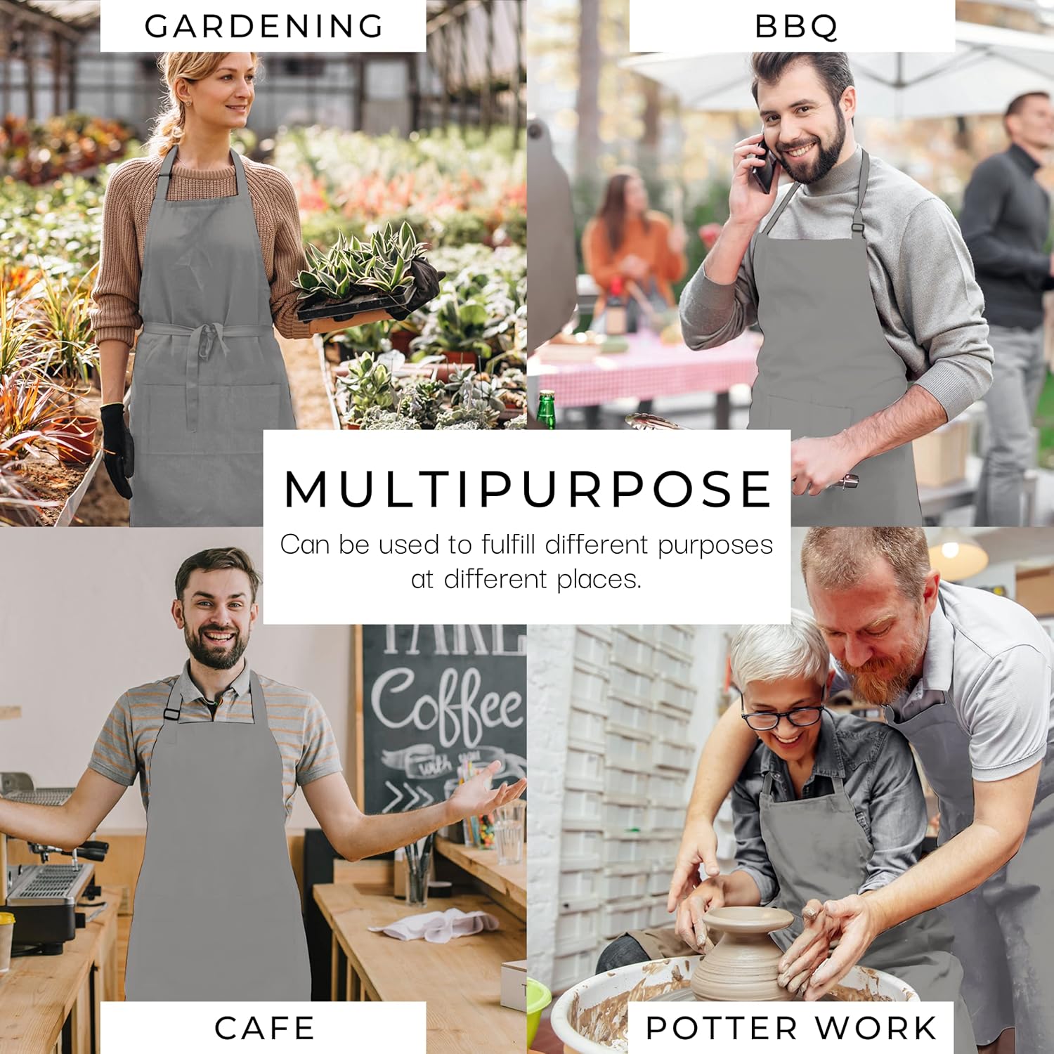 - WIDE COVERAGE : These versatile aprons are suitable for kitchen cooking, backyard BBQs, and artistic pursuits like painting. Offering protection against hot oil, water droplets, and various stains, they ensure a reliable shield for diverse activities.