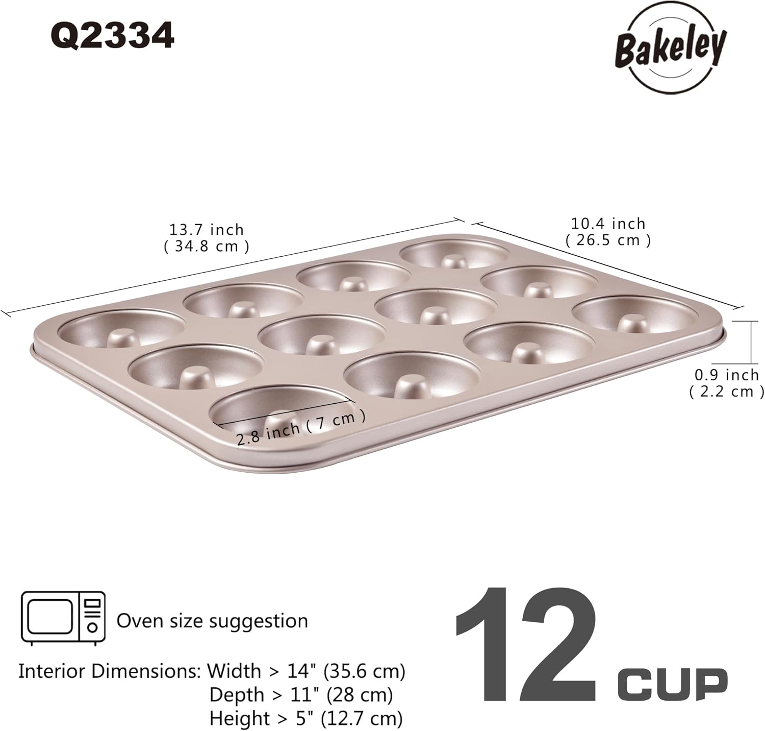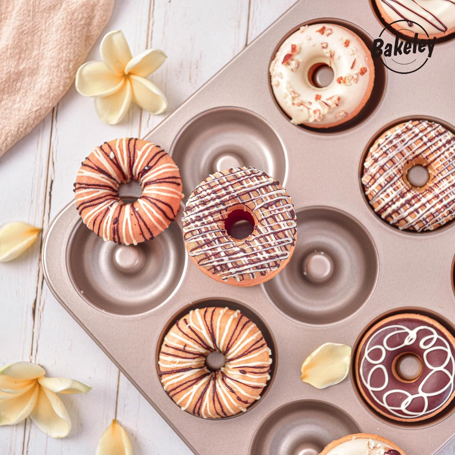 Donut Pan, 12-Cavity Non-Stick Dount Mold Cake Pan Pattern Doughnut Bakeware for Oven Baking (Champagne Gold)
