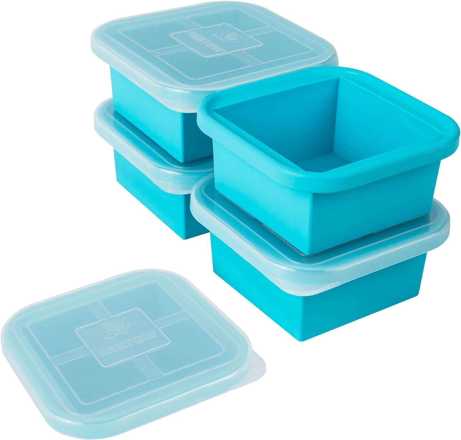 Silicone Freezing Tray with Lid - 2-Cup 4 Pack Freezer Containers,Make 1 Perfect Freezing,Storing Soups, Foods, Stews, Dips or Sauces Simple and Convenient Color Aqua