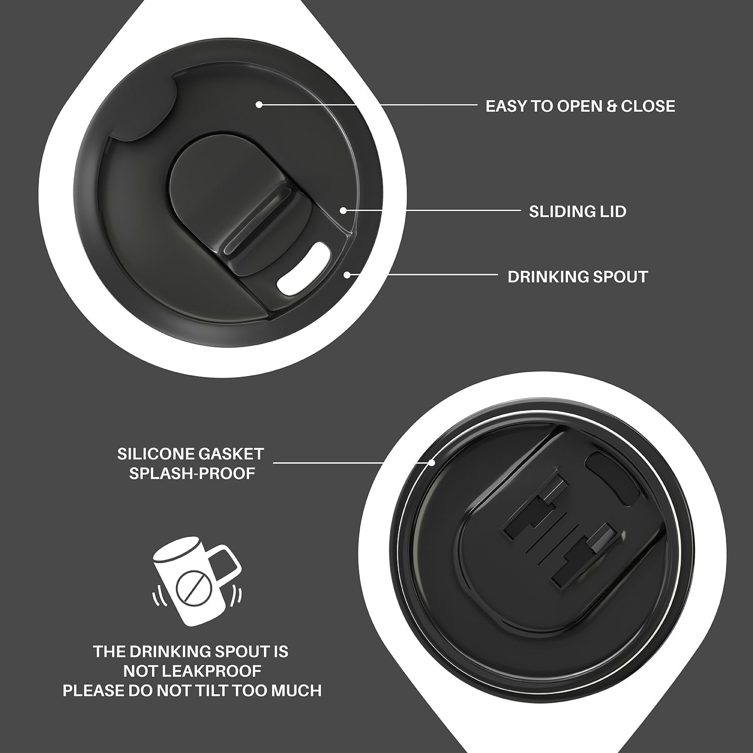 - Large Capacity - Our thermal beverage mug has an ample capacity of 16 Oz ( 470 ml ). Reduce the number of times you run to pour water.