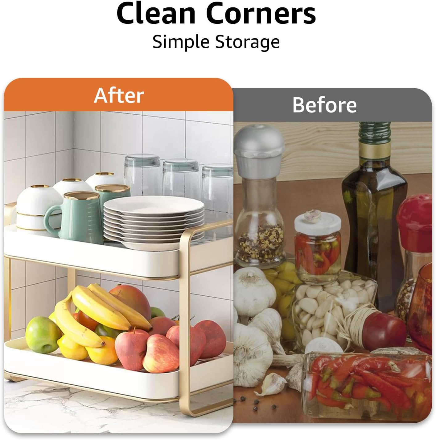 - Multi-Functional Storage and Organization: This versatile storage organizer shelf can store various items, including mugs, cups, bowls, fruits, vegetables, and snacks. It helps you keep your kitchen organized and clutter-free