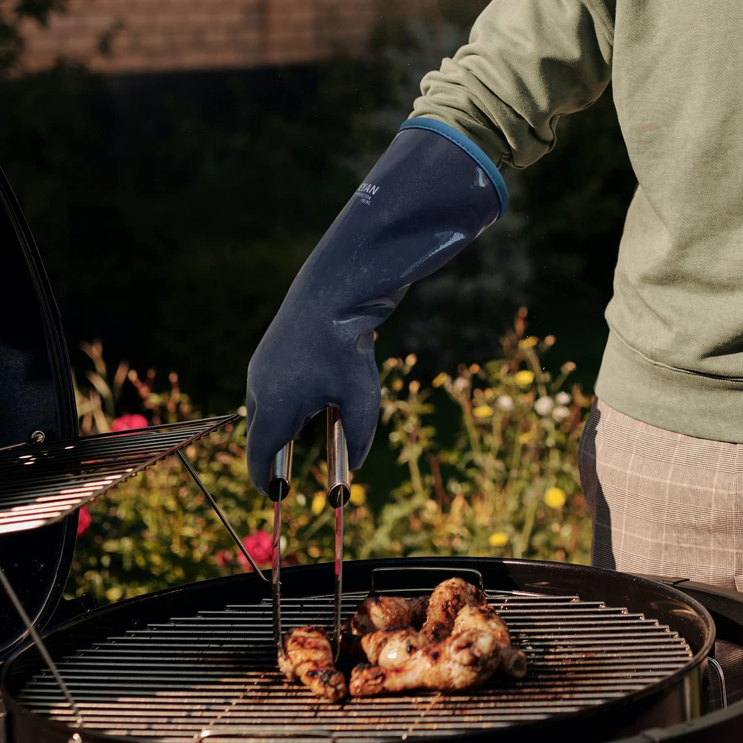 - 【Pro design】DEYAN BBQ gloves are made of two materials. The outer layer is non-slip, waterproof, and heat-resistant food-grade silicone. The inner layer is cotton, which makes your hands more comfortable and prevents allergies.