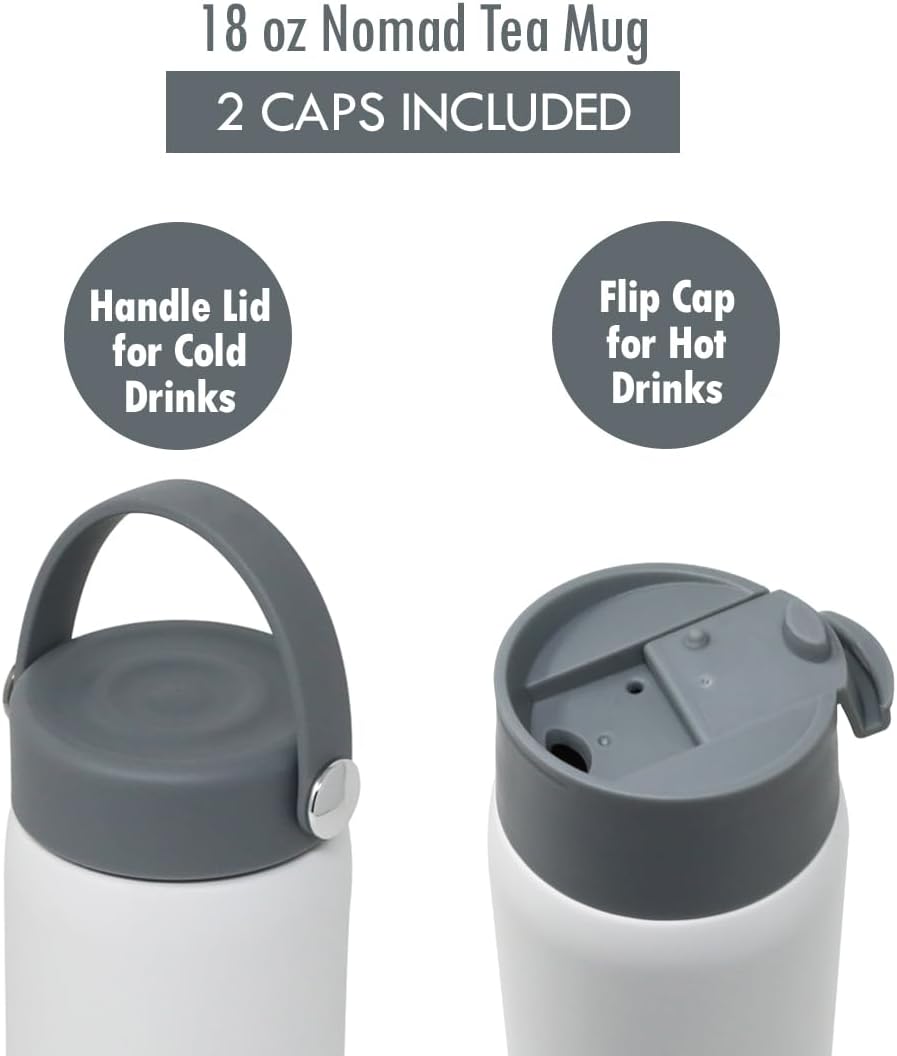 MIRA 18 oz Tea Infuser Thermos - Stainless Steel Travel Bottle with Removable Strainer for Loose Leaf Tea - Insulated Hot & Cold Brew Steeper - White