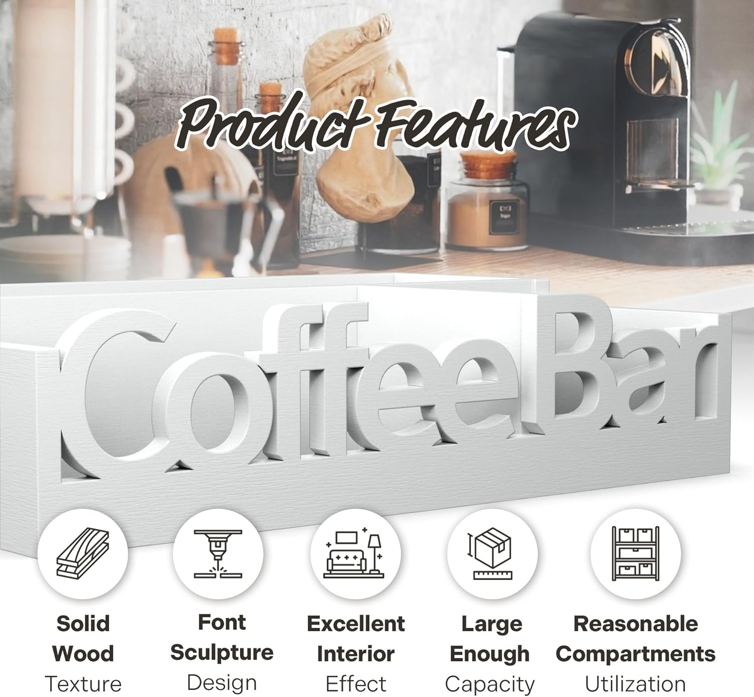 - Versatile Storage Options: Equipped with compartments for coffee capsules, tea bags, and other coffee bar accessories, our coffee organizer station is designed to simplify your beverage service area.