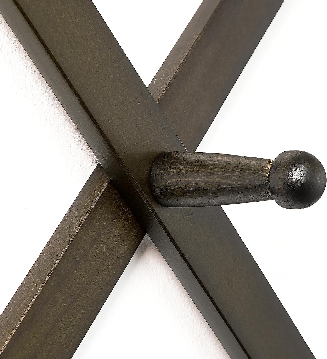 Dseap Accordion Wall Hanger: 16" High Wooden Expandable Coat Rack,Hat Rack,Accordion Hook Wall Mount for Baseball Caps,Coats,10 Peg Hooks,Dark Walnut