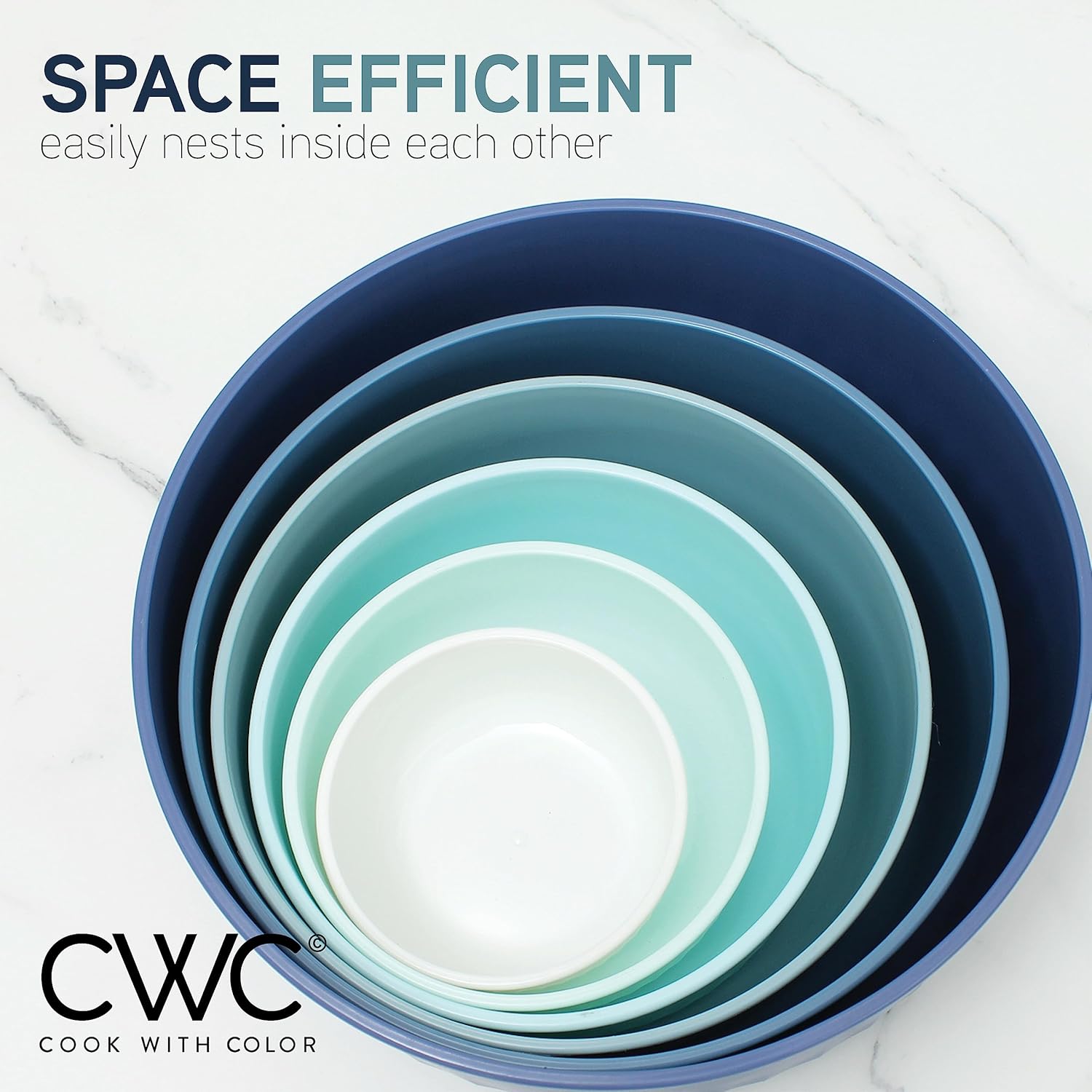 - Cook with Color 12 piece plastic mixing bowl set - non slip bowls with lids; easy to clean, sturdy mixing bowls.
