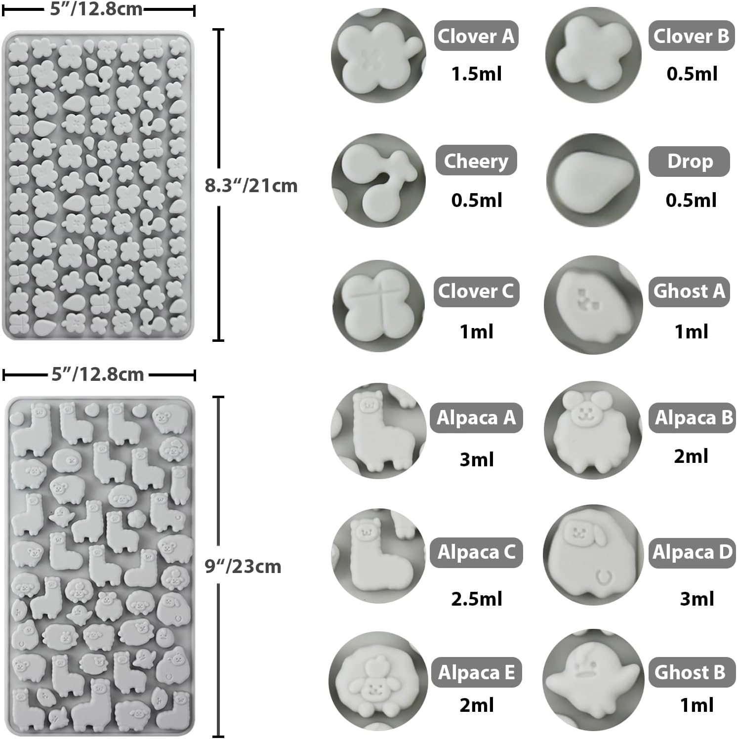 - Fun Animals & Flowers Shapes- Make your gummies with our 4 pack animals & flowers candy molds. This set comes with 4 trays with 2 droppers (Droppers color random), each mold creates exciting and adorable animals & flowers, including alpaca, piggy, bunny, lion, cow, tiger, clover, rainbow and cloud. Flexible silicone and makes up to 260 total gummies in every batch! Fill them with gelatin, vegan agar agar powder, or even juice.
