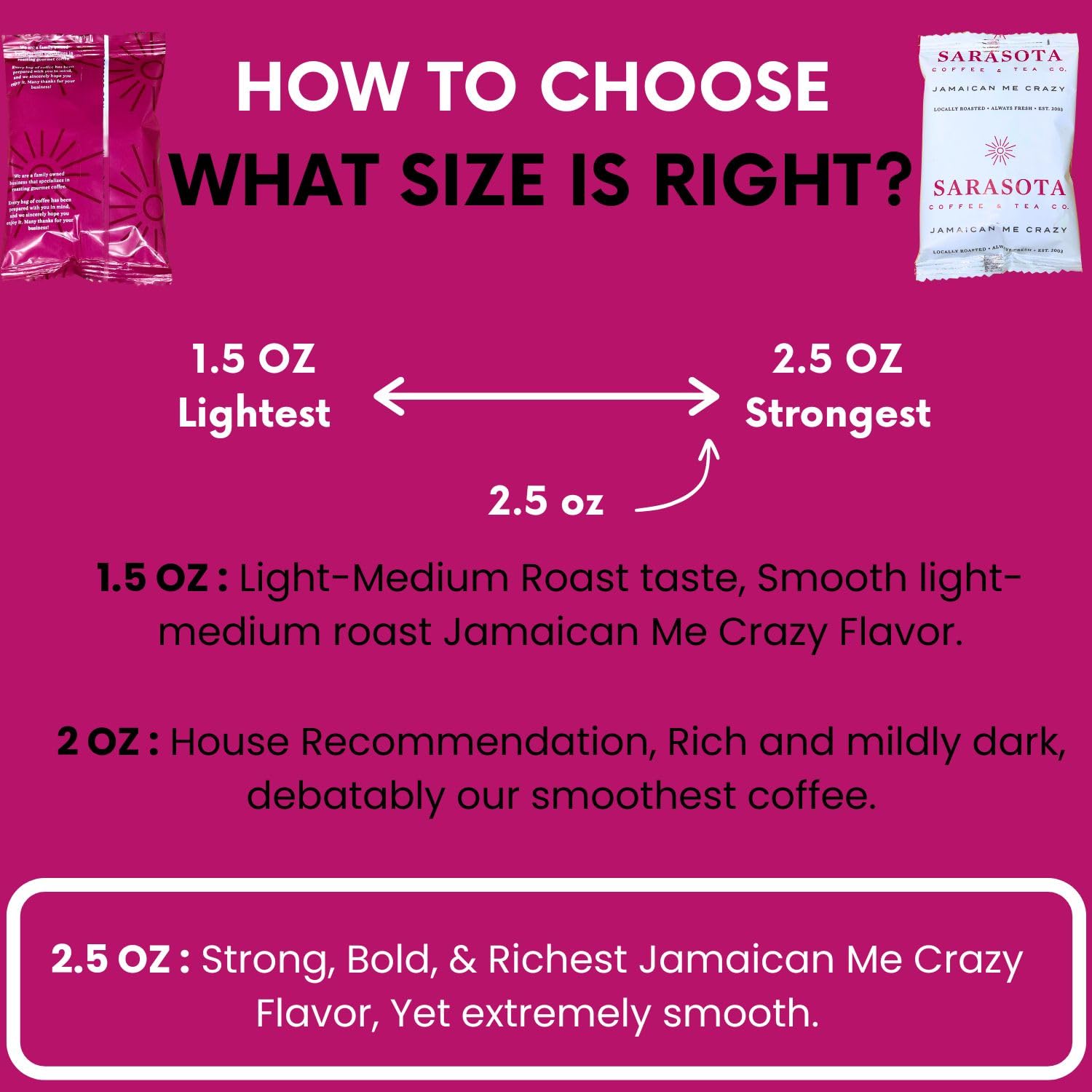 Sarasota Coffee Ground Packets | Gourmet Flavored Medium Roast Bulk Coffee Packs | Jamaican Me Crazy | Low Acid Mold Free Singles Individual Pouches for 12 Cups | 2.5 Ounce Bags, 36 Count