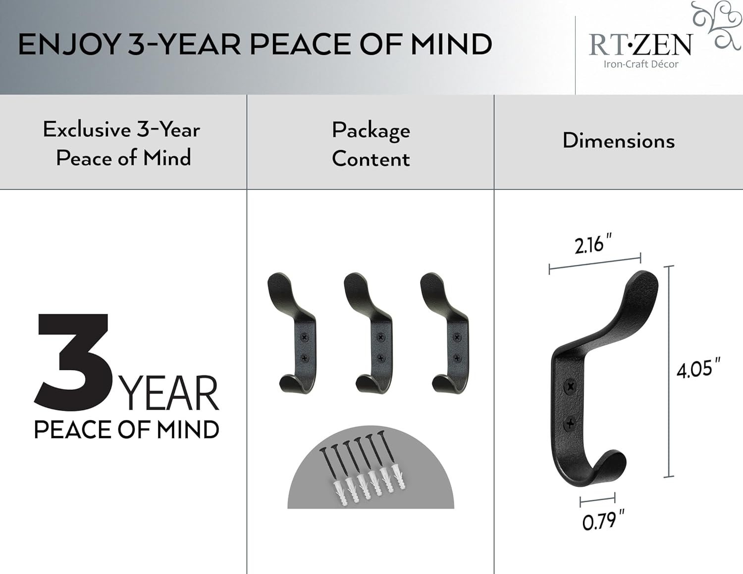 - EXCLUSIVE LIFETIME PEACE OF MIND WROUGHT IRON WALL HOOKS - DIY Decorative 2 Peg Organizer Wall Mounted Coat Hooks, Heavy Duty, Waterproof, Sturdy & Strong 3 Pack Wall Coat Rack with Hooks for Home or Office