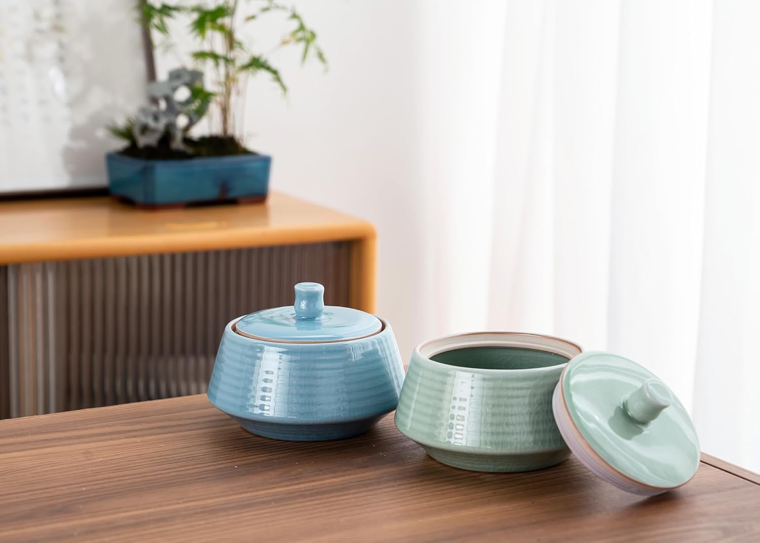 - 【SUITABLE CAPACITY】: About 13.53 OZ(400ml), Dimensions - 4.40 inches in diameter, 3.35 inches in height. Small and Exquisite Ceramic Food Storage Jar.