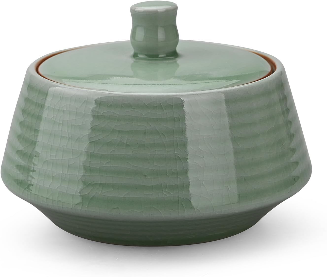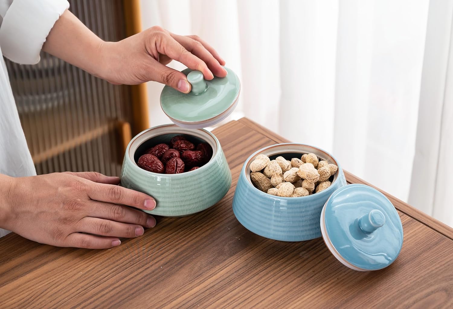 - 【SUITABLE CAPACITY】: About 13.53 OZ(400ml), Dimensions - 4.40 inches in diameter, 3.35 inches in height. Small and Exquisite Ceramic Food Storage Jar.