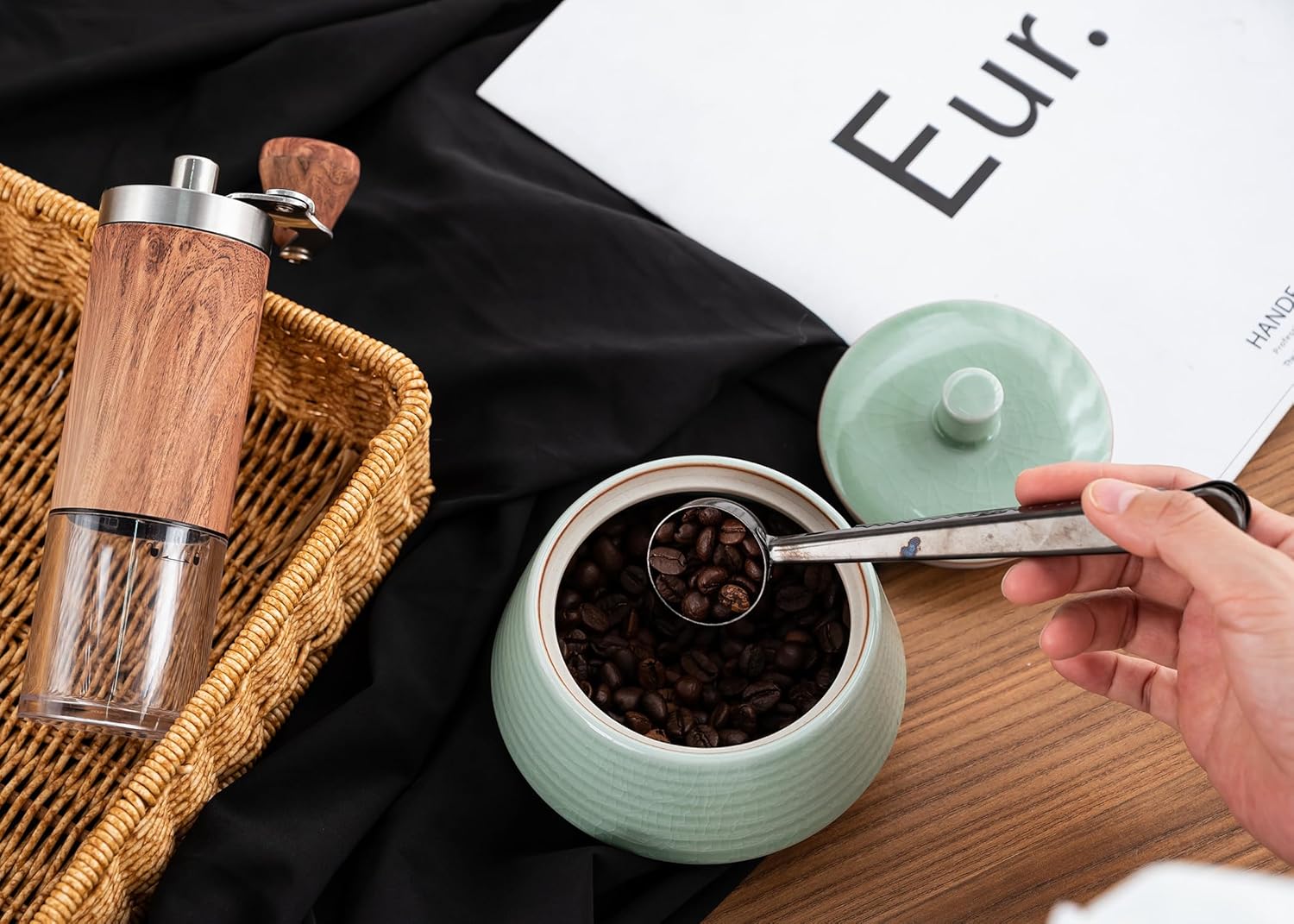 Retro Kitchen Ceramic Canister, 13.53 FL OZ (400 ML) Vintage Food Storage Jar for Tea, Coffee Beans, Herb, Candy, Spices, Nuts (Green(ICE))