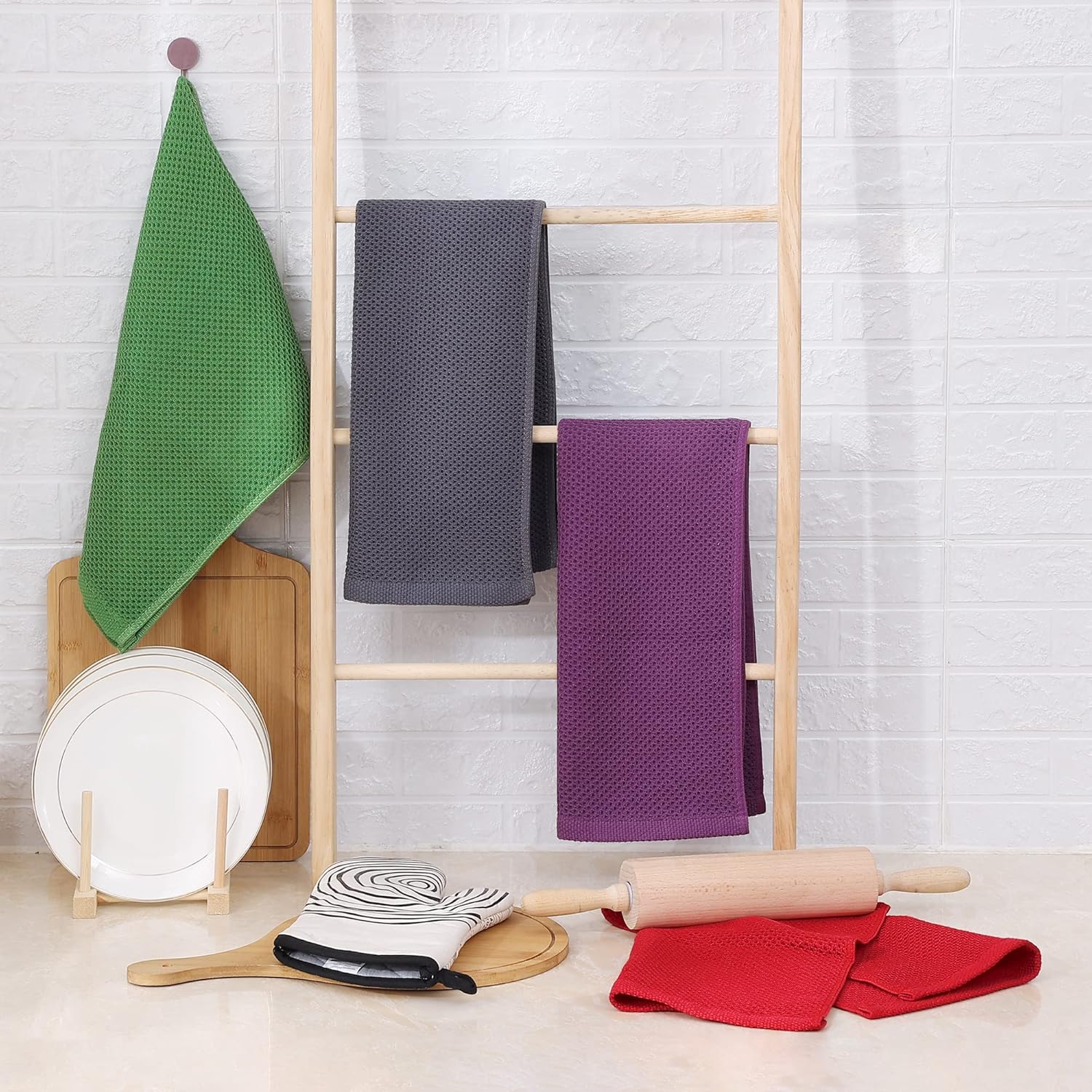 Homaxy 100% Cotton Waffle Weave Kitchen Dish Towels, Ultra Soft Absorbent Quick Drying Cleaning Towel, 13 x 28 Inches, 6-Pack, Purple