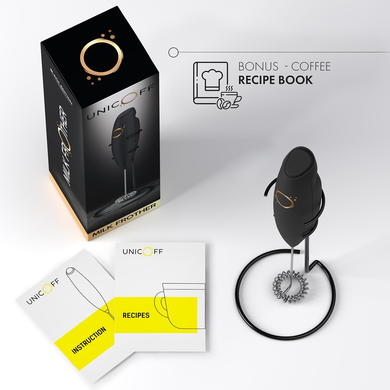 - GUARANTEE: Great support and money-back guarantee. The electric frother comes with a BONUS - delicious coffee recipes book, so that you can enjoy your coffee frother to the full.