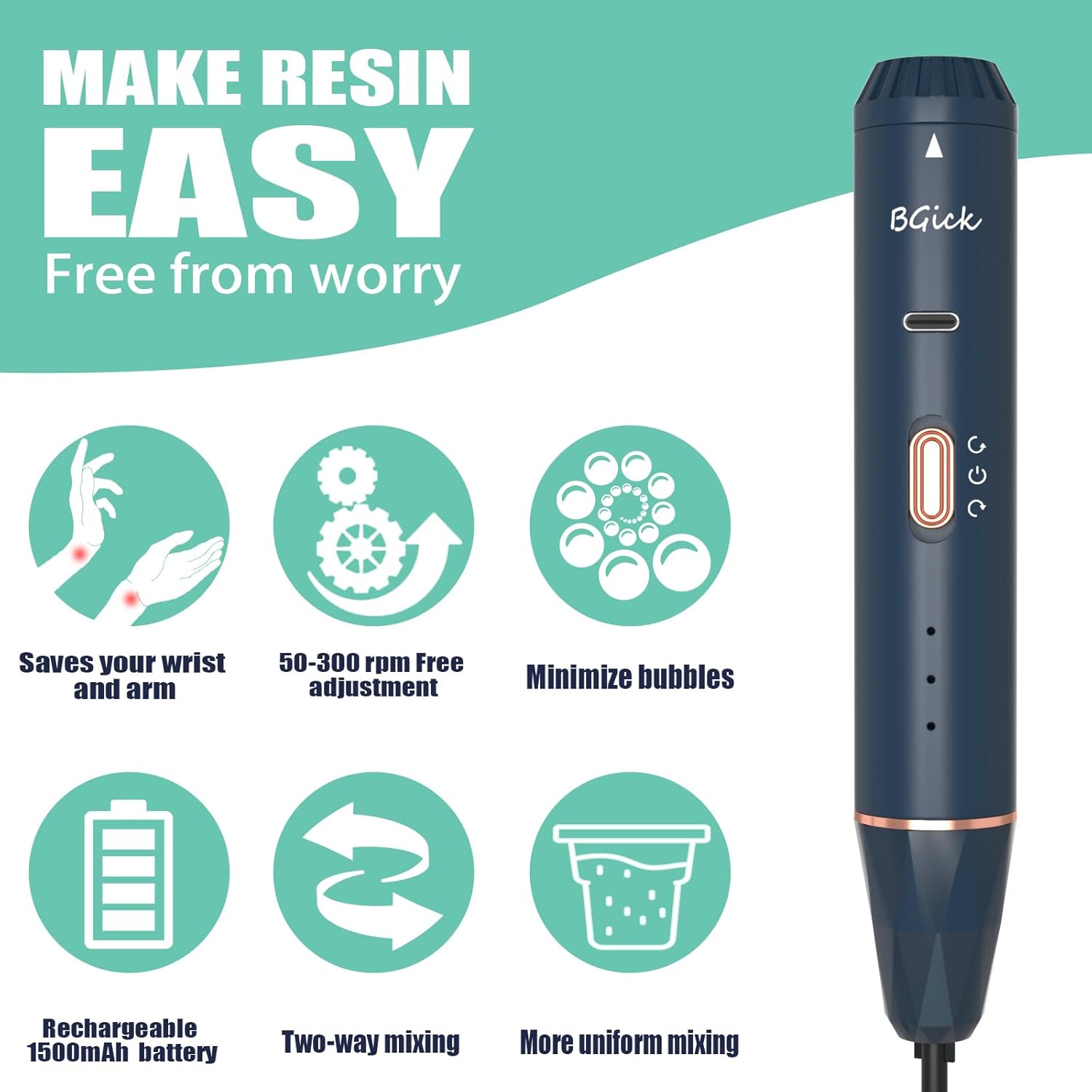 - 【Rechargeable Stirrer】BGick resin mixer tool is rechargeable, 1500mah large-capacity battery, equipped with USB data cable, The red light above is always on when charging, the bottom turns blue after 4-6 hours of charging.