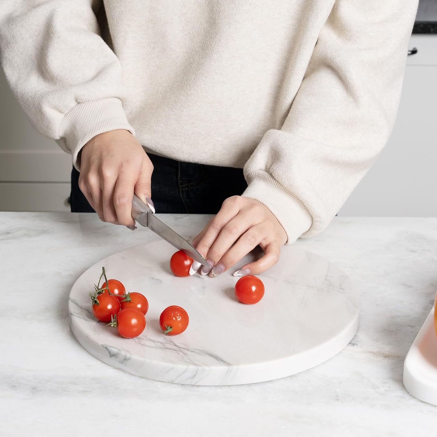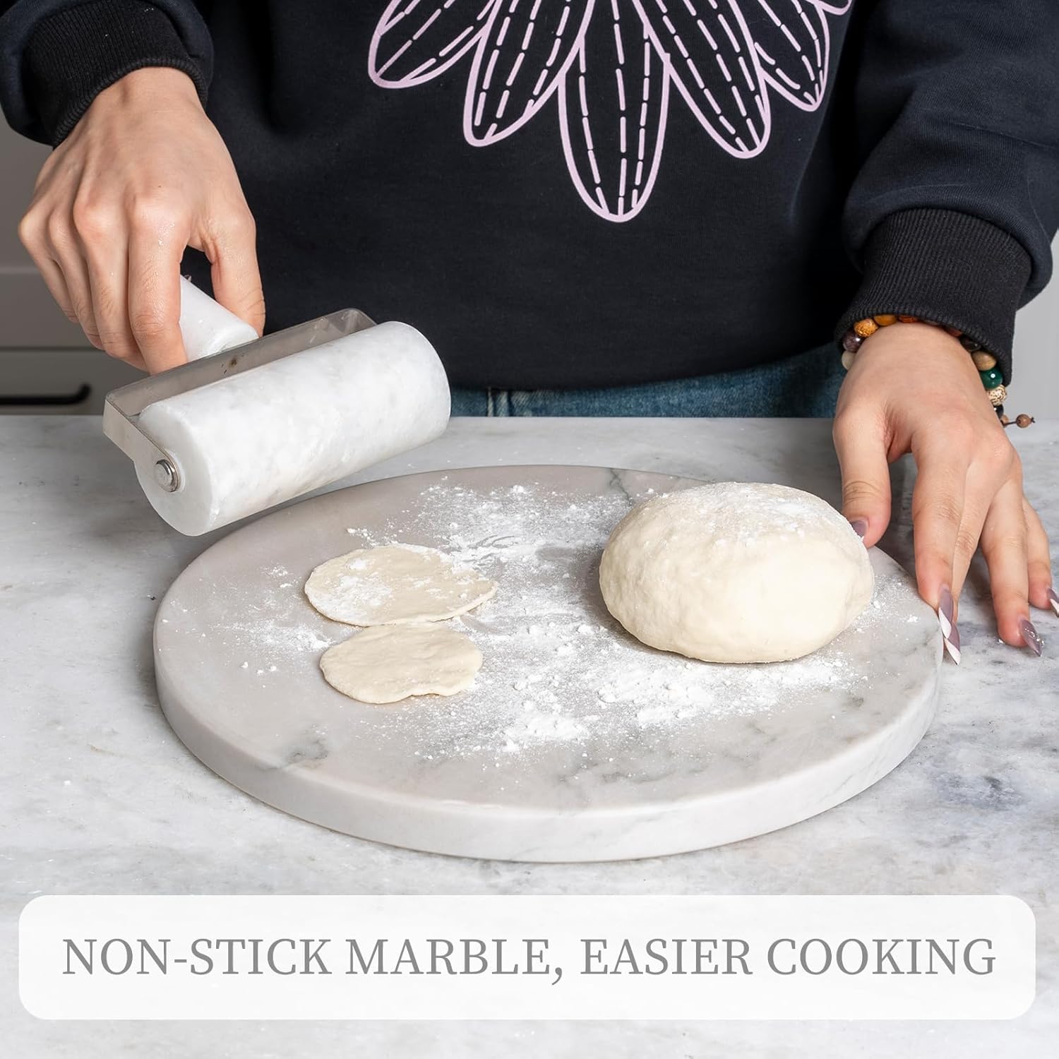 - KITCHEN ESSENTIAL: The unique marble cutting board serves as a highlight in your kitchen. Exquisite marble patterns and natural material elevate your kitchen into a stylish culinary space. While its non-slip feet securely hold the board in place during prep, helping to guard against injury, its convenient non-stick surface allows for the easy rolling of dough, pastries, and fondant with a minimal amount of flour. It's even great for chocolate tempering and serving cheese!