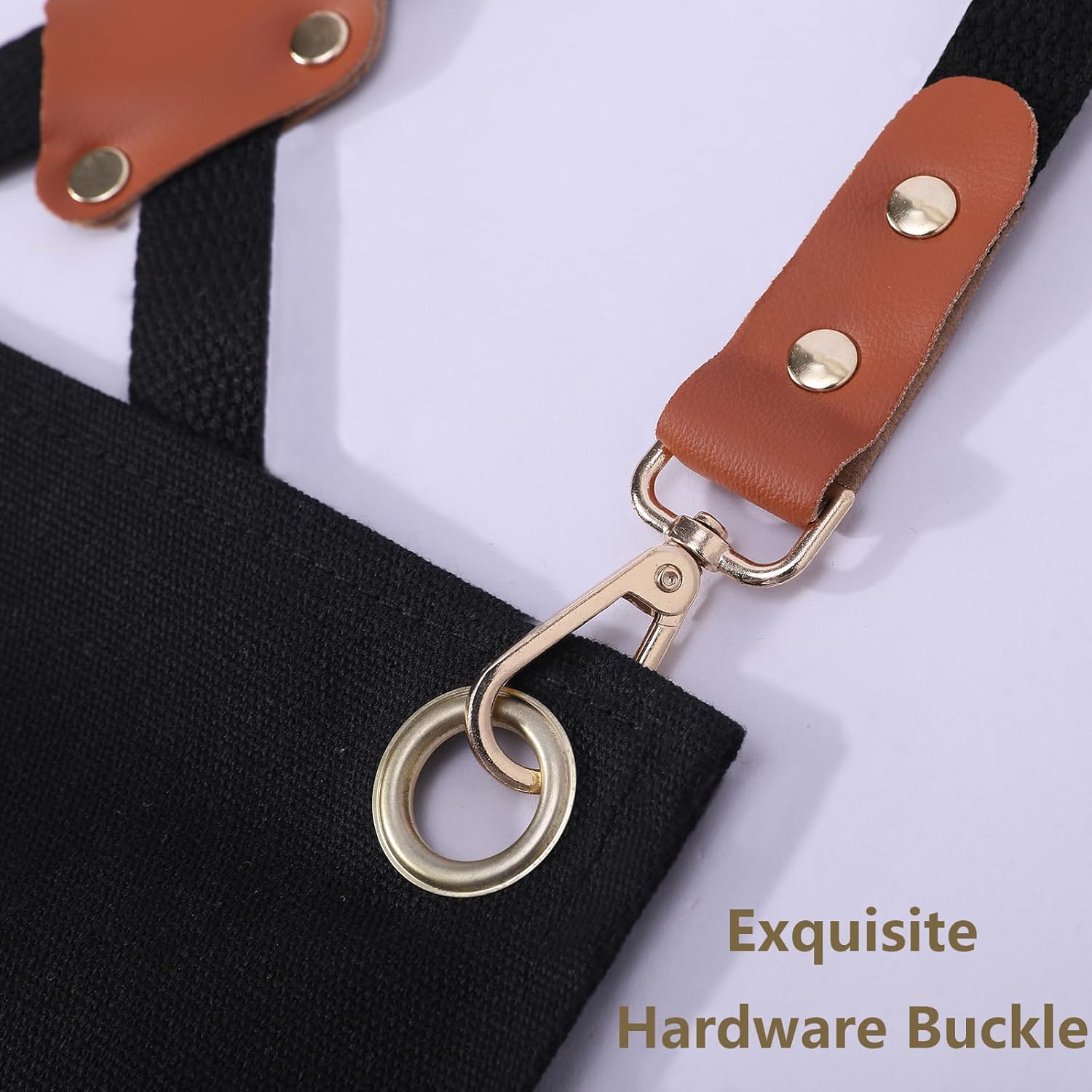 - Comfortable to wear: This kitchen apron has a cross back design that does not pinch your neck. This chef apron is made of high-quality brass metal fasteners and faux leather, and there are leather buckles on the back to fix the two detachable shoulder straps, which is more convenient to put on and take off. The apron is fully handmade and is comfortable to wear for a long time.