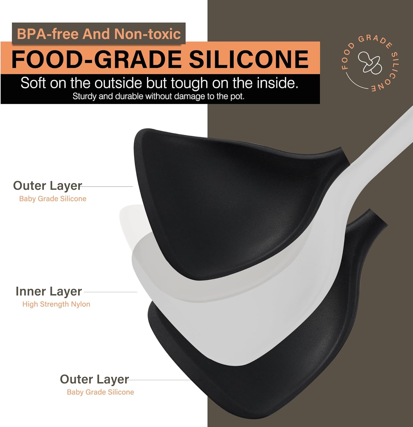 - HOLIDAY GIFT CHOICE: Our large utility silicone spoons for cooking has a stylish look and neutral color that matches many kitchen decoration styles. This silicone cooking utensils set for cooking and serving is a thoughtful gift for home cooks, cooking enthusiasts and cooking beginners