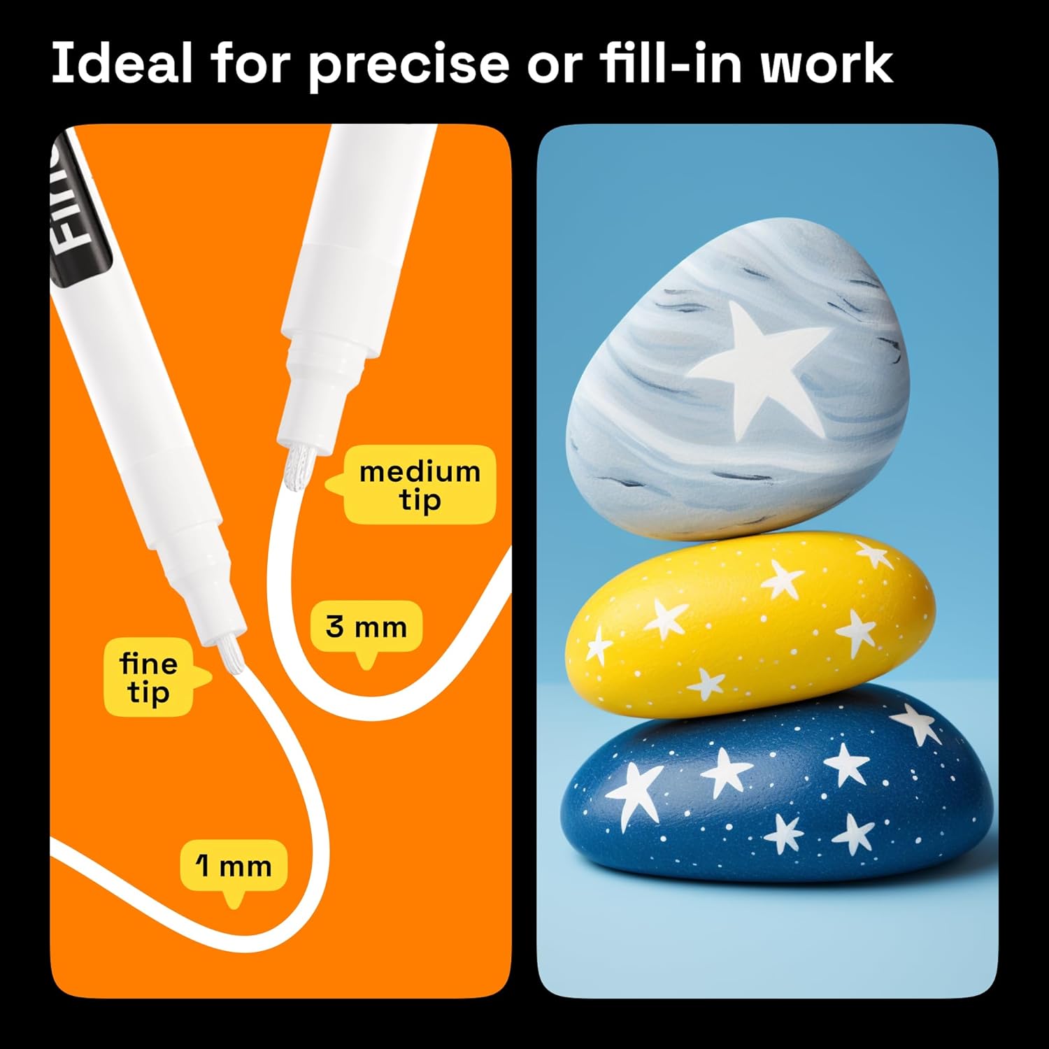 ARTISTRO 5 White Acrylic Paint Pens, Acrylic Paint Markers Different Tip, Fabric Markers for Textile, Canvas, Rock, Glass, Wood, Paper, DYI, Pens for Kids and Adults
