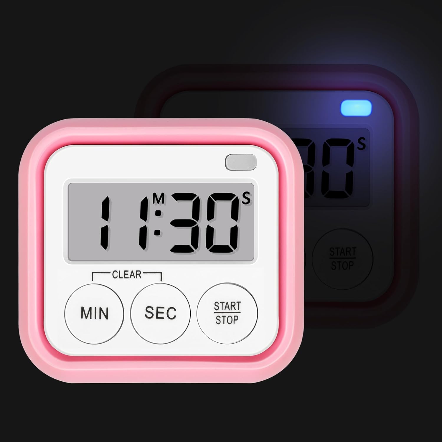 Timer, Kitchen Timers for Cooking Classroom Timer for Kids Teachers Magnetic Digital Timers 2 Pack, Pink