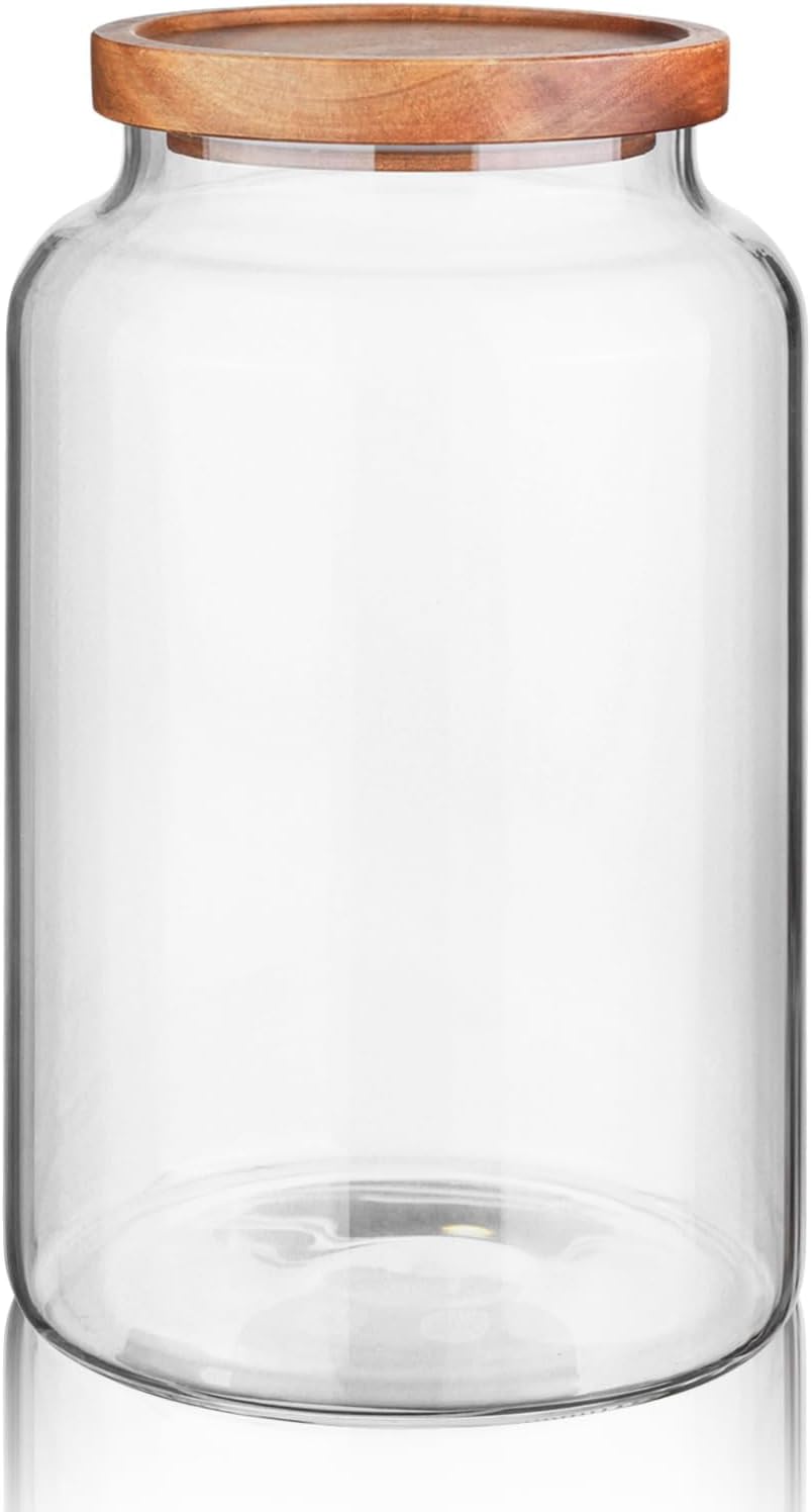 - AIRTIGHT LIDS - The glass kitchen canisters are with an airtight wooden lid, it can seal the content away from humidity and air. Keeps food fresh longer. Glass and wood lidded canister makes a perfect storage and display solution for your home.