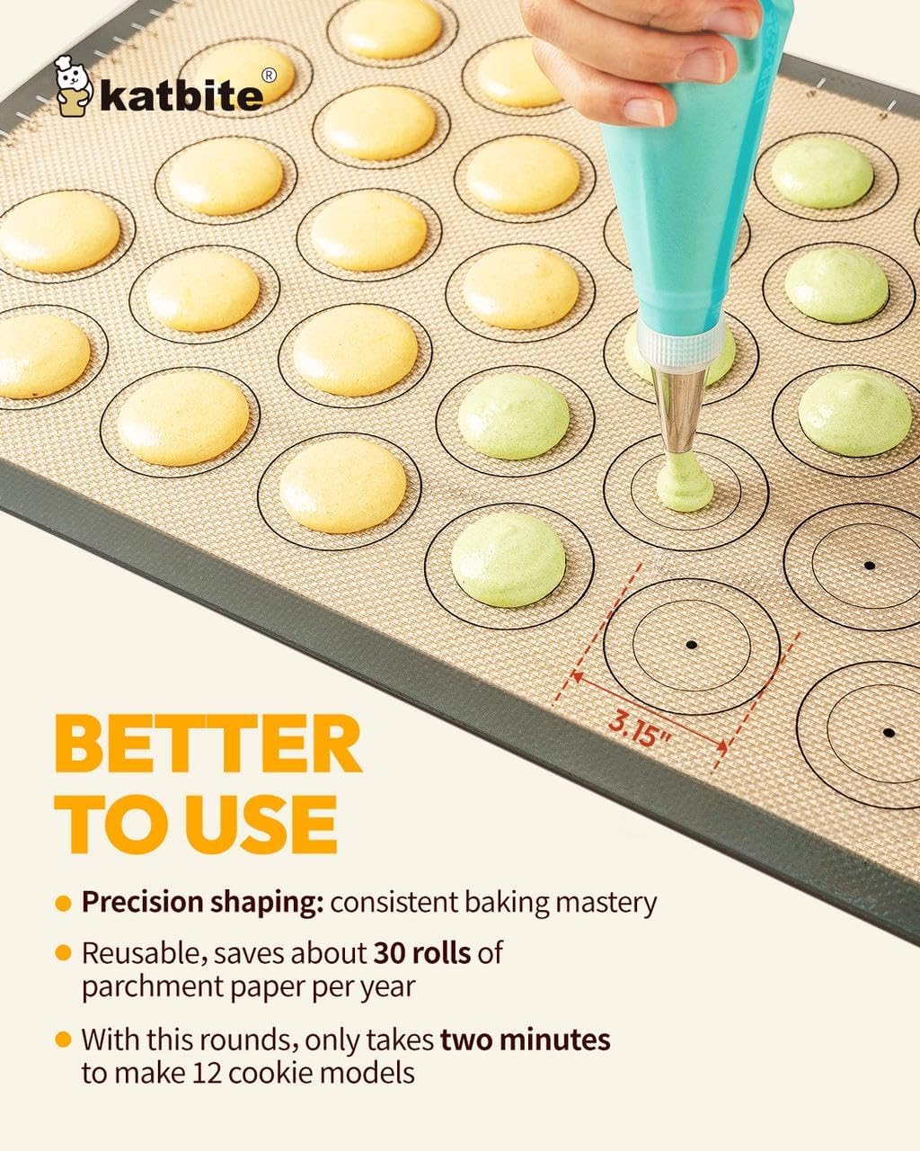 Silicone Baking Mat Set of 5, Katbite Food Grade Non-stick Reusable Cookie Sheet Bakeware Mats for Making Macaron, Cookie, Pizza, Pastry
