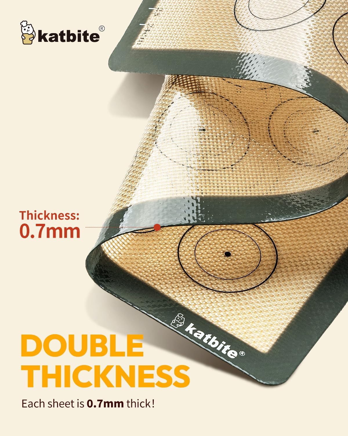 - 𝐃𝐔𝐑𝐀𝐁𝐈𝐋𝐈𝐓𝐘 𝐀𝐍𝐃 𝐒𝐓𝐀𝐁𝐈𝐋𝐈𝐓𝐘 - Boasting a thickness of 0.7mm, our silicone baking mat set for baking are nearly twice as thick as other brands on the market. This ensures that during your baking sessions, the mat won't slip or wrinkle, providing a solid foundation for your culinary creations.