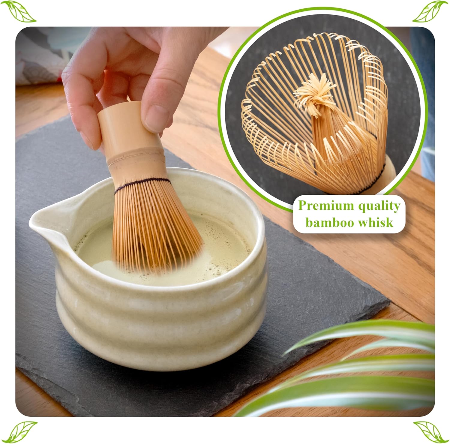 - PREMIUM QUALITY- We love creating a beautiful and high-quality matcha kit that will last you a lifetime. We take great pride building matcha tools that will enhance your matcha tea experience. From our matcha starter kit to our deluxe matcha whisk set, each matcha whisk and bowl is handmade and thoroughly inspected. Our matcha whisk and matcha spoon are made of all-natural bamboo. The matcha bowl and matcha whisk holder is made from lead-free ceramic.