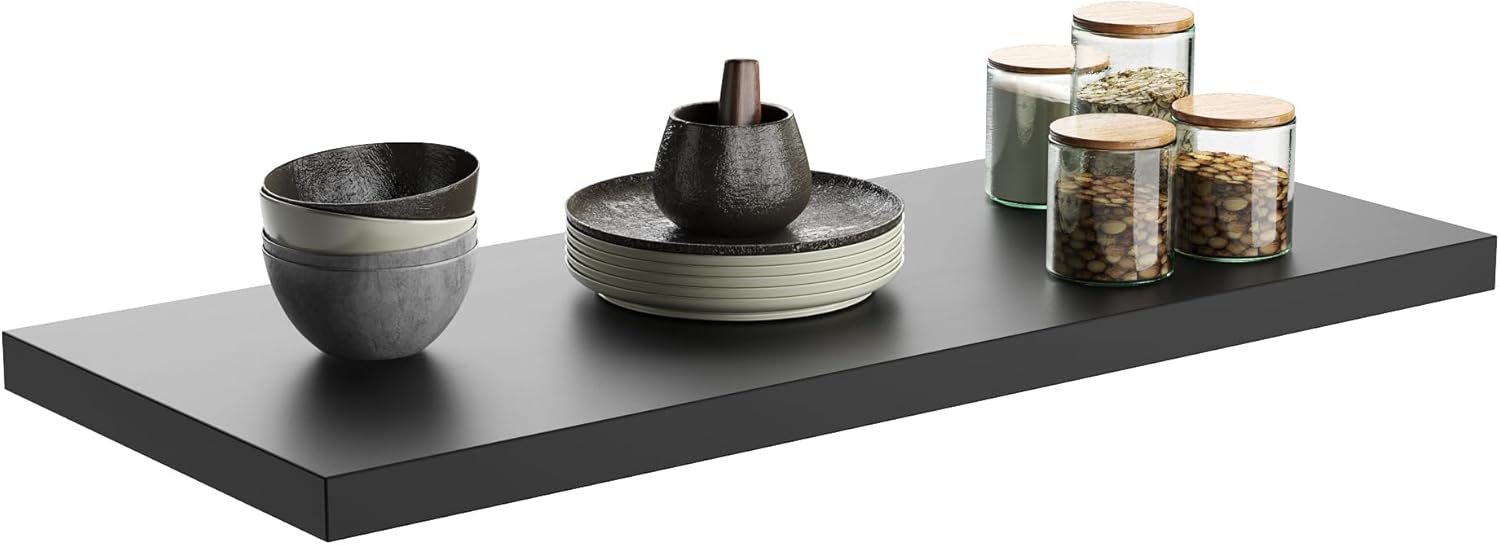 Wall Shelf Set of 1, Black Floating Shelves 24 in W x 10 in D x 1 in H, Wooden Floating Wall Shelf with Invisible Brackets for Living Room/Bedroom/Bathroom/Kitchen Storage and Decor
