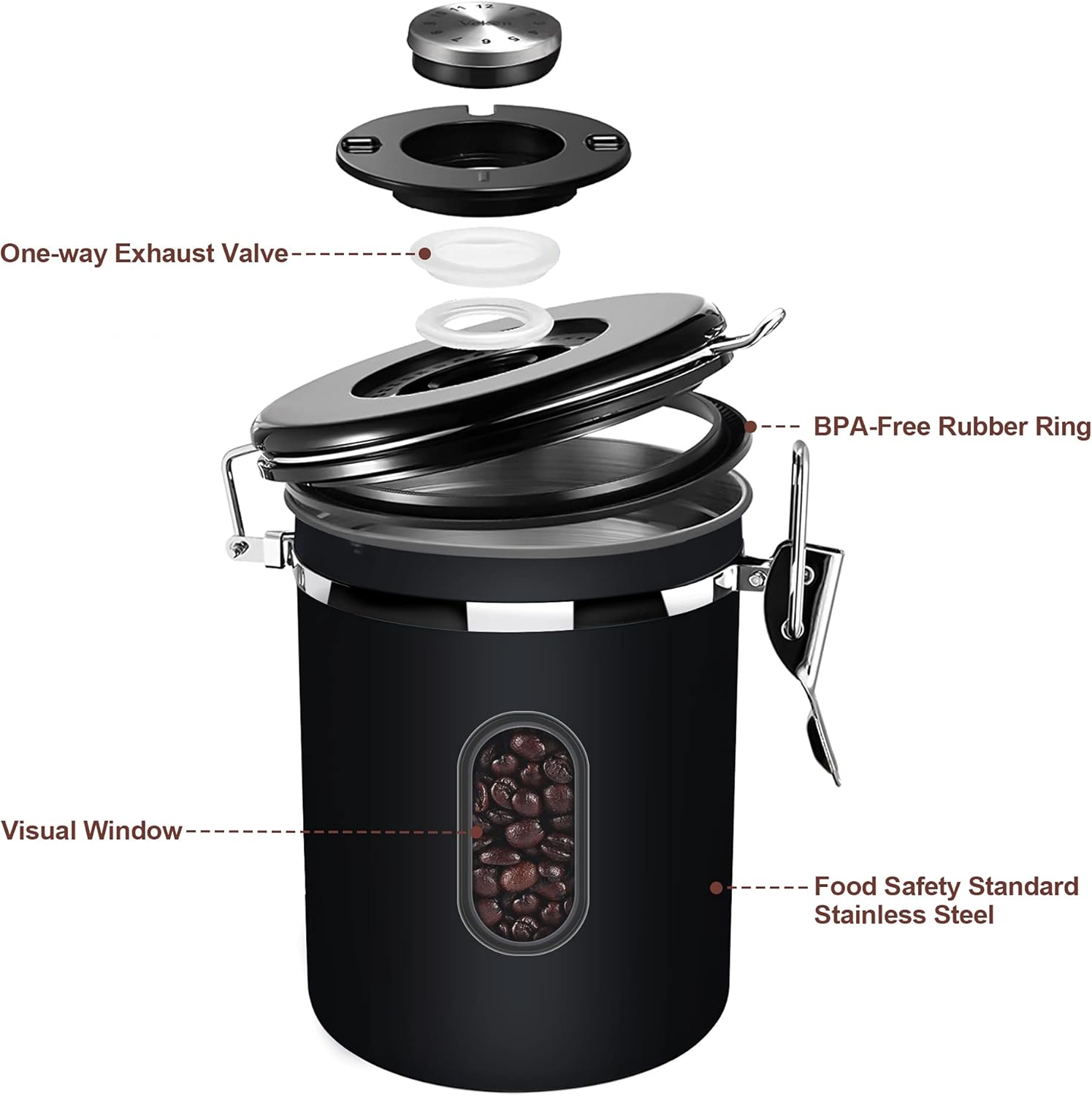 - ☕ Date Tracker, Transparent Window & Free Scoop: Stay organized with the integrated date tracker on the lid of the ROCKY&CHAO coffee storage container, allowing you to easily set storage or expiry dates. The transparent window offers a quick glimpse of how many beans are left, so you won't have to guess when it's time to refill. Additionally, a free 30ML stainless steel coffee scoop is included, conveniently attaching with a hook for effortless measuring of your coffee beans or grounds.