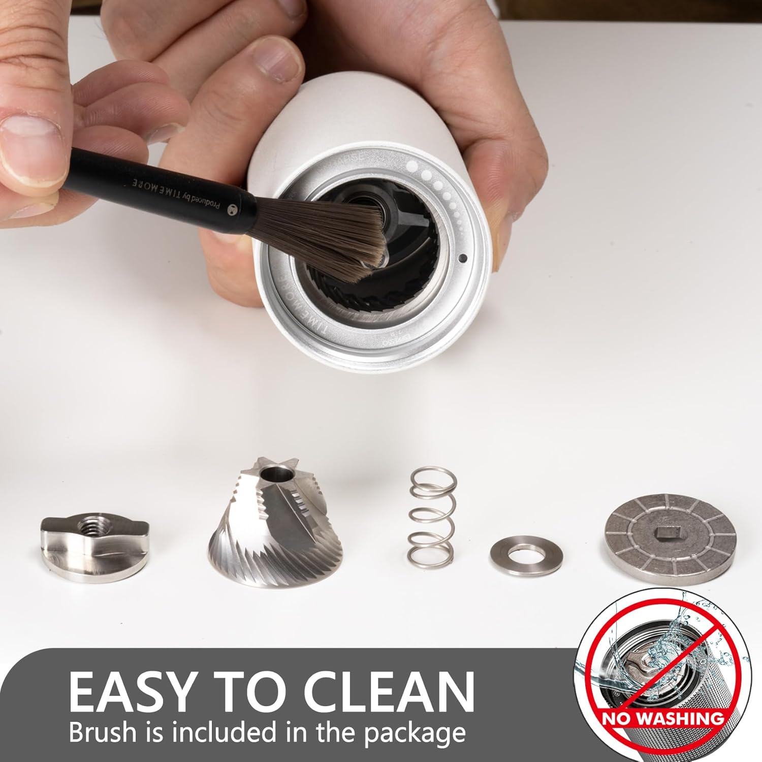 - [ Easy Clean & Carry ] Coffee grinder upgraded folding handle is perfect for on-the-go carrying, while maintaining a lightweight and a moderate sense of weight and luxury. It is ideal not only for home use but also for carrying outdoors or traveling. Easy to disassemble for cleaning - just be cleaned by brush.