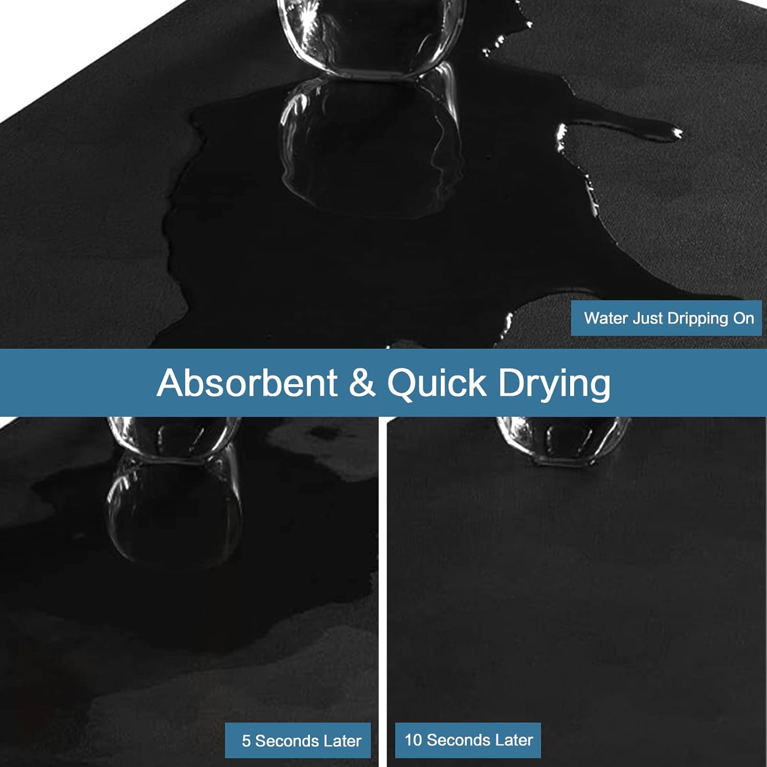 Coffee Mat 12''x19'' Dish Drying Mats for Kitchen Counter - Absorbent Hide Stain Bar Accessories Anti Spill Rubber Backed - Fits Under Coffee Maker Espresso Machine Dish Rack (Black)