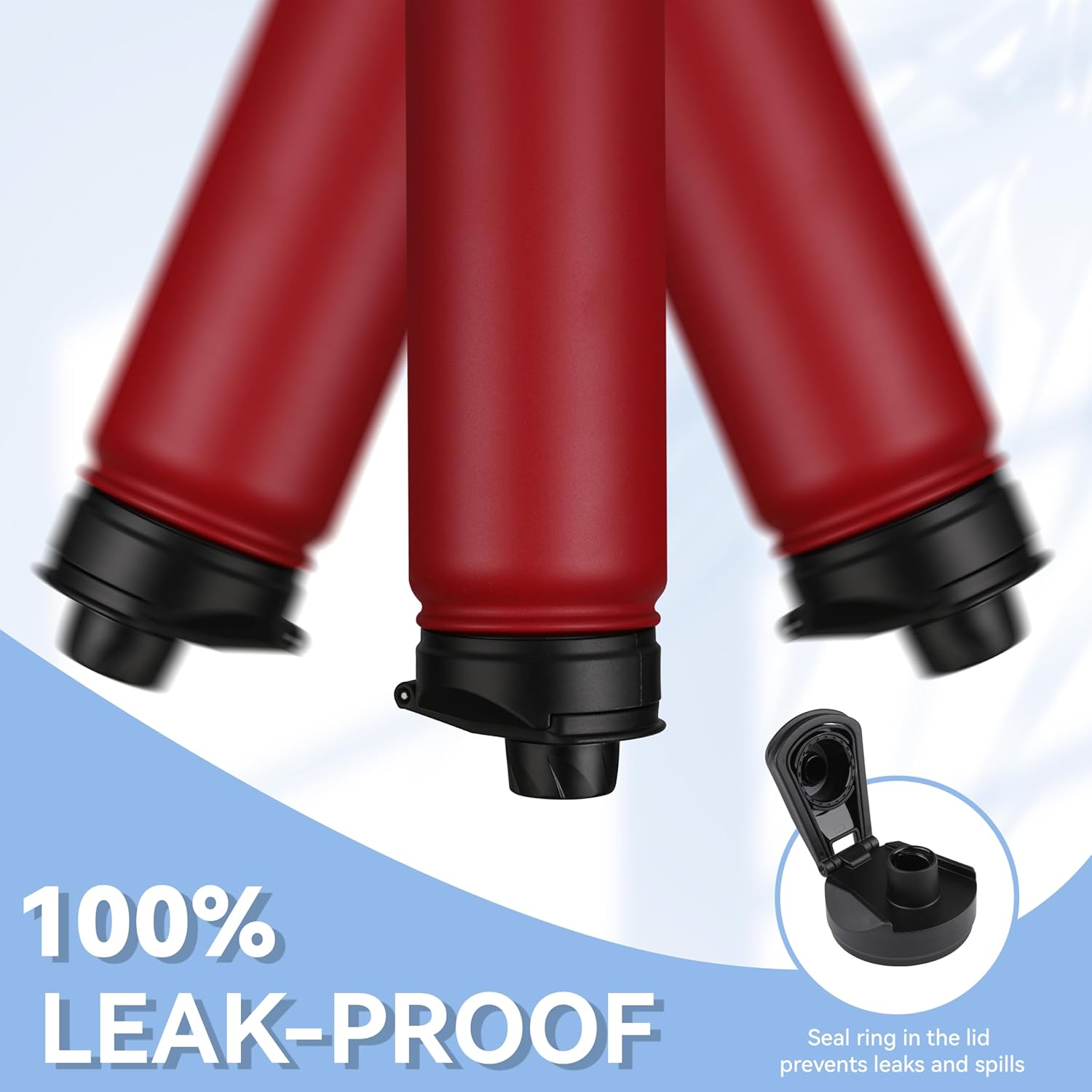 HASLE OUTFITTERS Insulated Water Bottle 22 oz Double Wall Stainless Steel Water Bottle Wide Mouth with Straw Lid & Spout Lid Keeps Cold or Hot(Red,1)