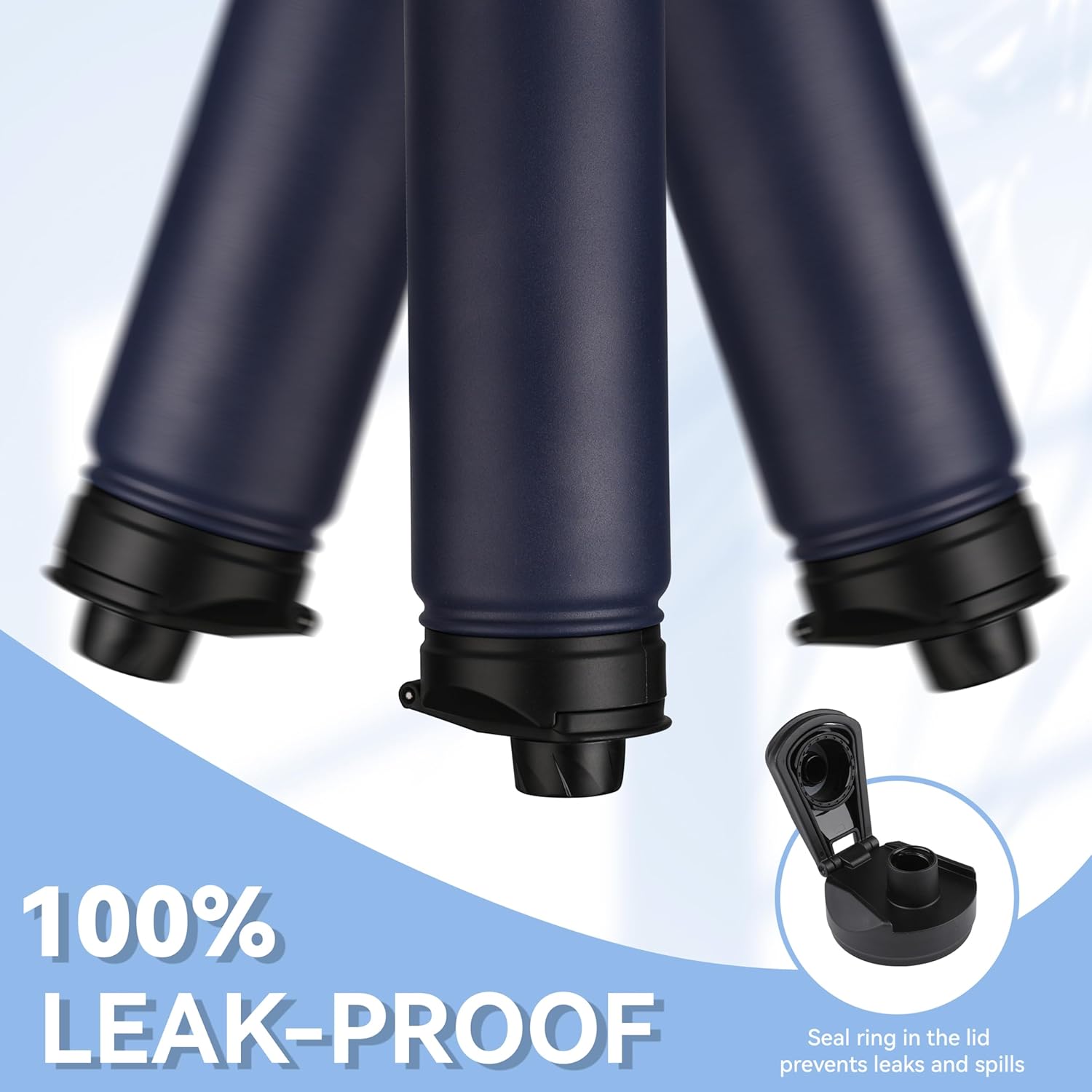HASLE OUTFITTERS Insulated Water Bottle 22 oz Double Wall Stainless Steel Water Bottle Wide Mouth with Straw Lid & Spout Lid Keeps Cold or Hot(Navy,8)