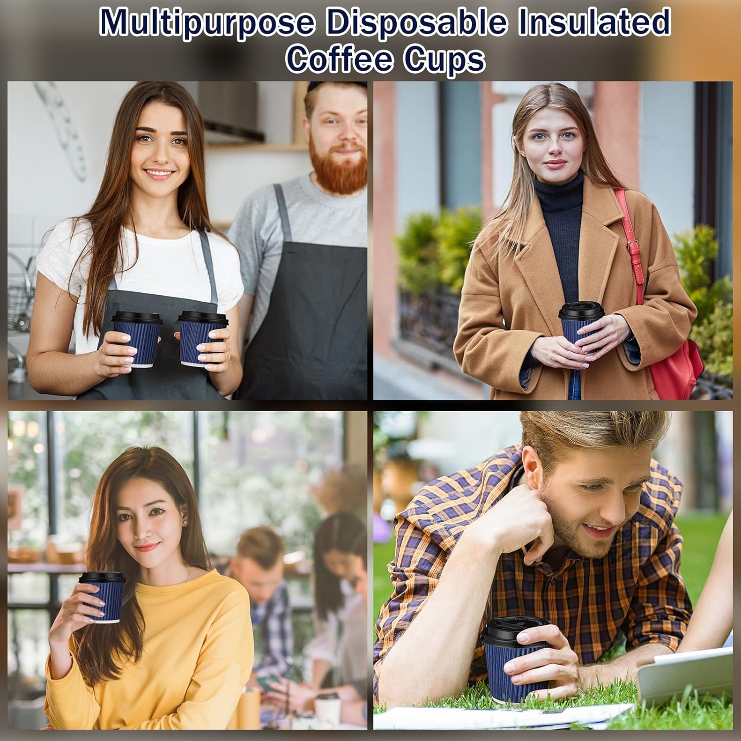 Uiifan 100 Set 4oz Disposable Espresso Cups with Lids Ripple Corrugated Paper Disposable Coffee Insulated Hot Ripple Cups for hot Chocolate, Tea, and Cocoa Drinks(Blue)