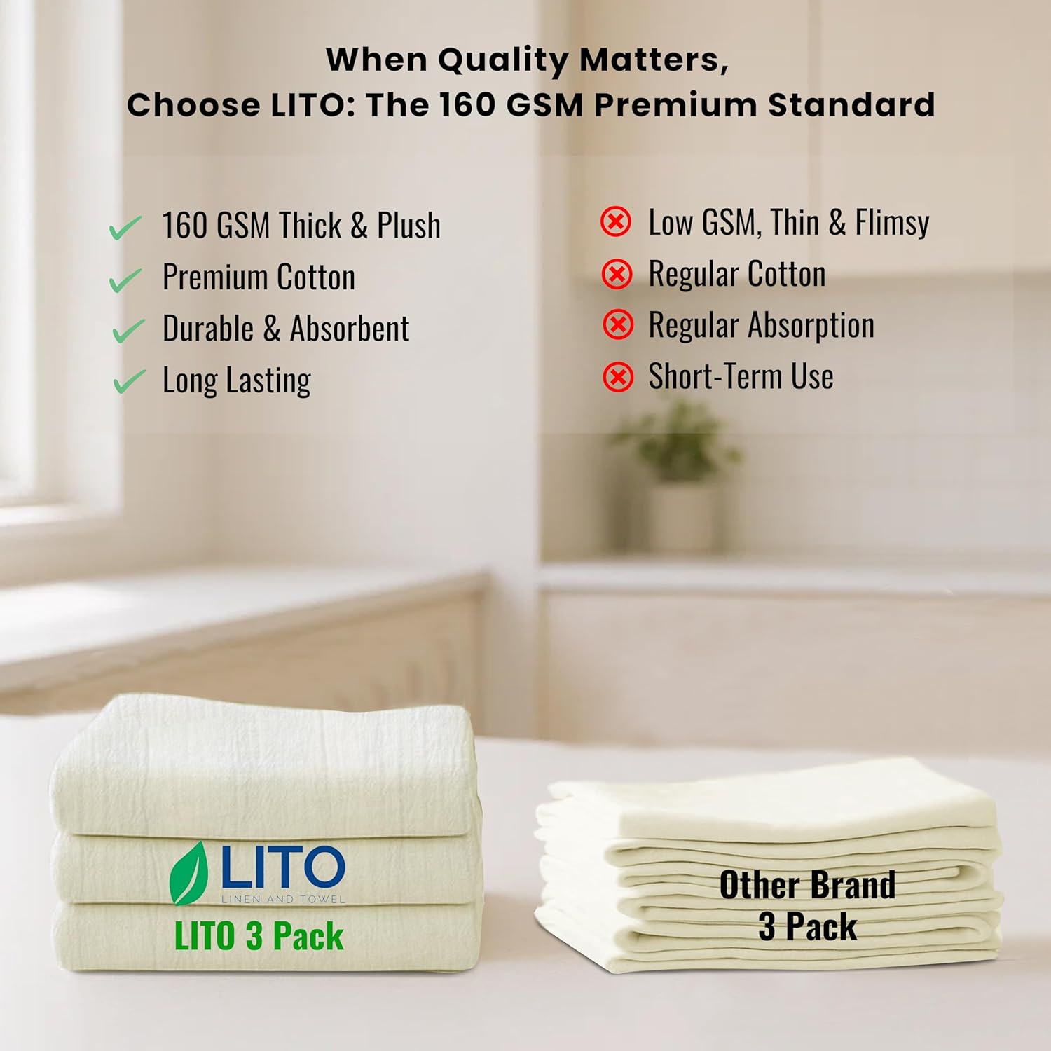 - MULTIPURPOSE: Their lint-free pure ring-spun cotton composition makes them perfect for drying glassware, hands and surfaces. Moreover, they excel at tasks like cheese straining, salad spinning, and even serving as reliable dough covers for baking.
