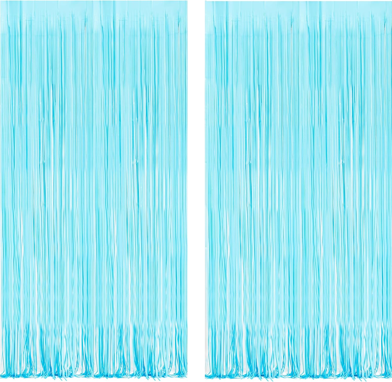 BRAVESHINE Foil Fringe Curtains Party Backdrop - Tinsel Curtain Backdrop Streamers Party Supplies for Halloween/Boo/Baby Boy/Frozen/Under Sea/Shark/Mermaid Birthdays Decorations - 2Pcs Pastel Blue