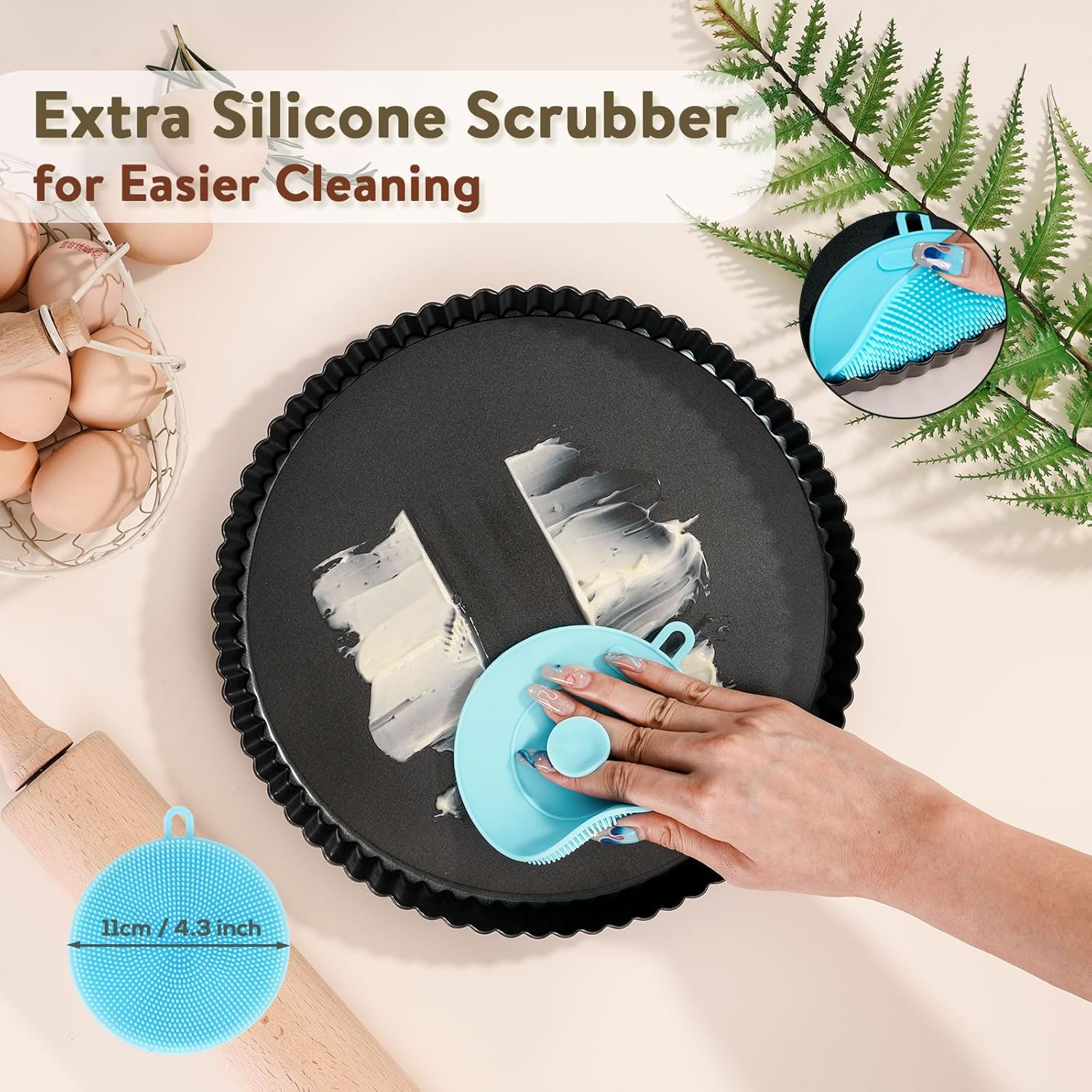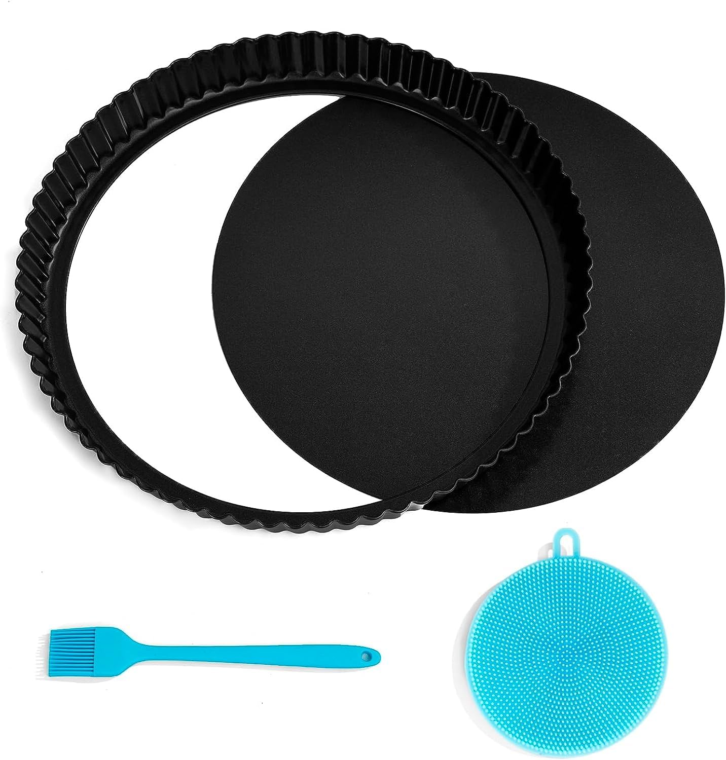 - Tools For Easy Cleaning and Use: There is a silicone brush and a silicone scrubber along with the quiche bakeware in the package. Using the silicone scrubber not only makes it easy to clean, but also protects the coating of the tart pan from scratches. Also, you are recommended to use the silicone oil brush to brush a layer of oil during baking, so that you can remove the baked food easily without breaking them . They are practical tools for your baking.