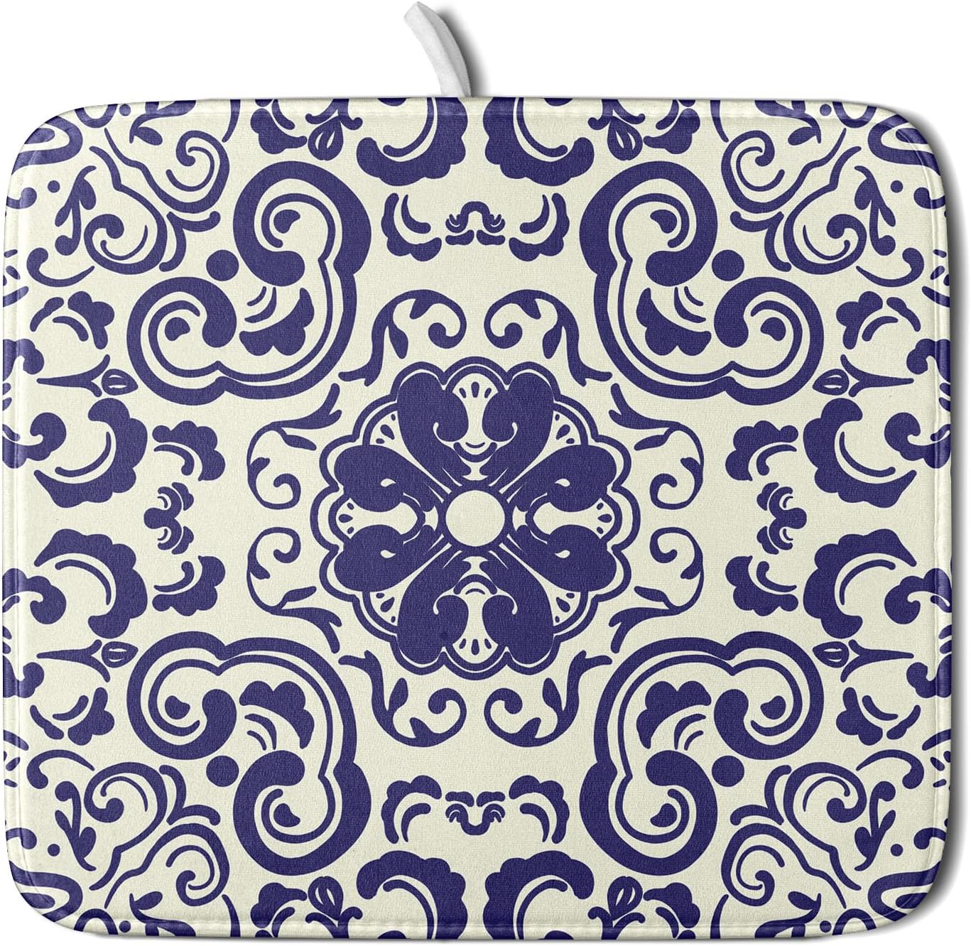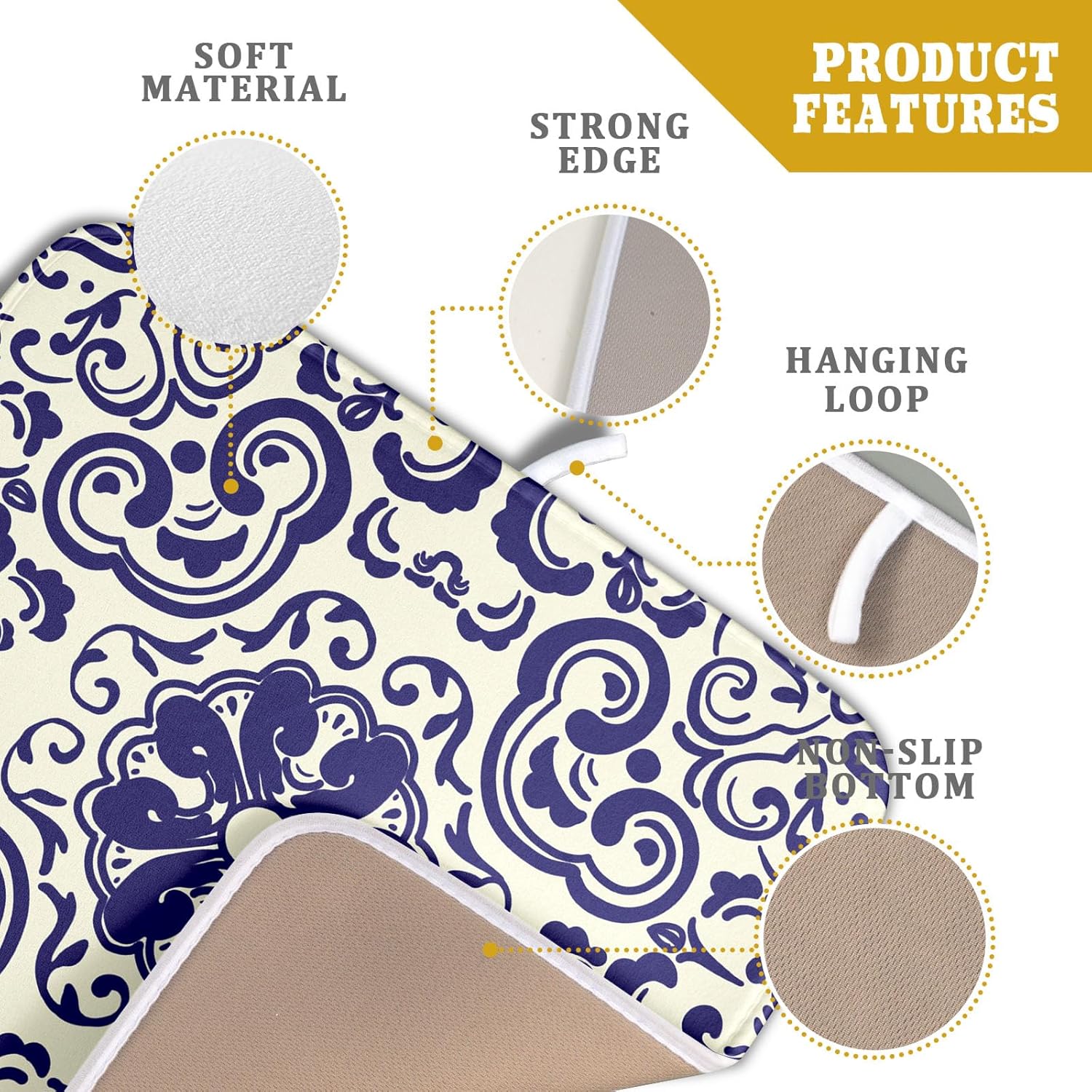 - 2【Widely Used】: The blue boho floral dish drying mats for kitchen counter countertop, coffee bar, dish drain rack, great for air drying dishes, glasses, silverware, pots, pans, fruits and vegetables. It's fade resistant and never stain your kitchen counter topand keep your counter dry.