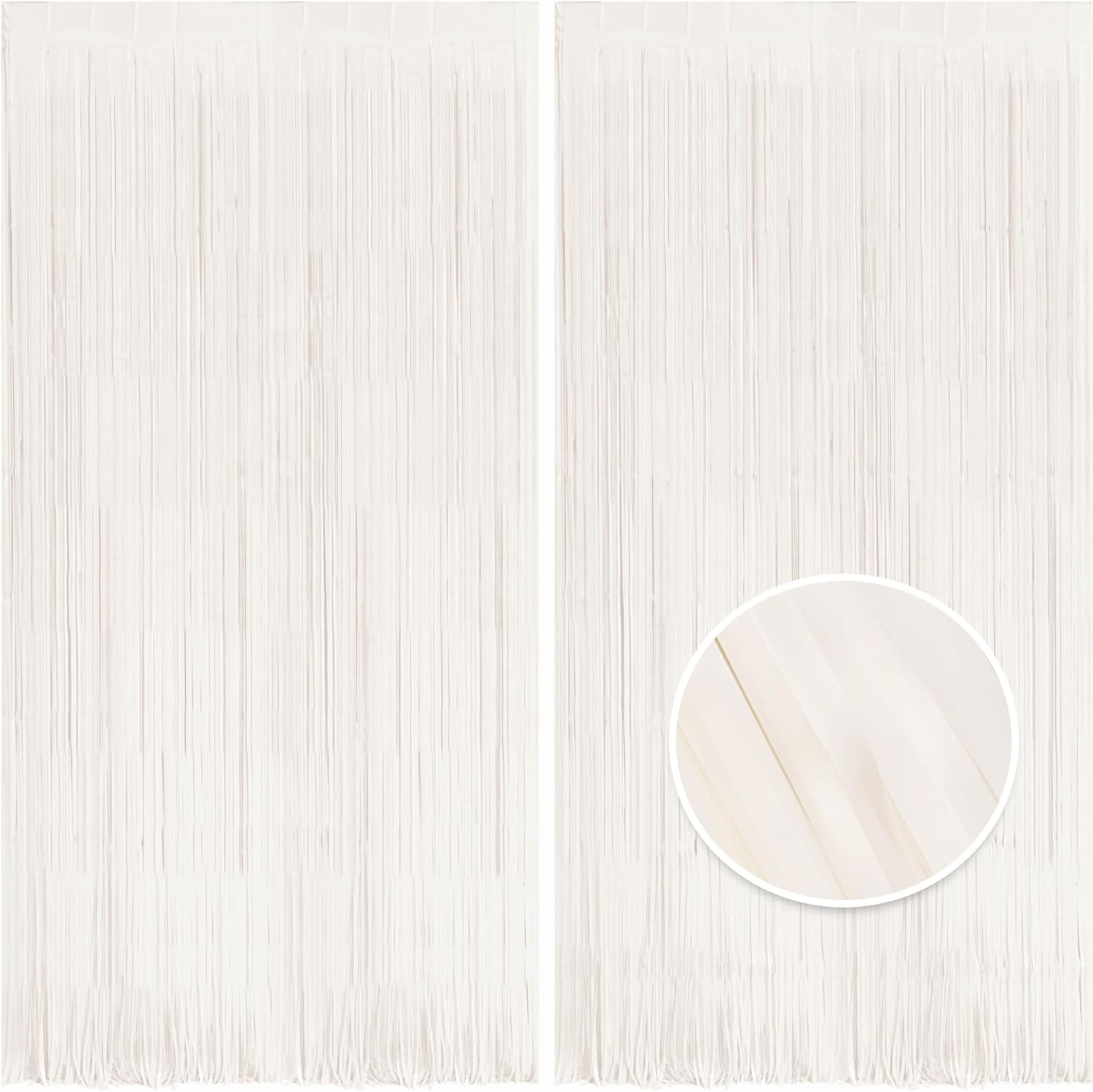 BRAVESHINE Tinsel Photo Backdrop Curtains - 2 Pack 3.2x8.2ft White Foil Fringe Streamer Curtain for Halloween/Boo Day/Valentine’s/Birthday/Christmas/Engagement/Bridal Shower Party Supplies Decorations