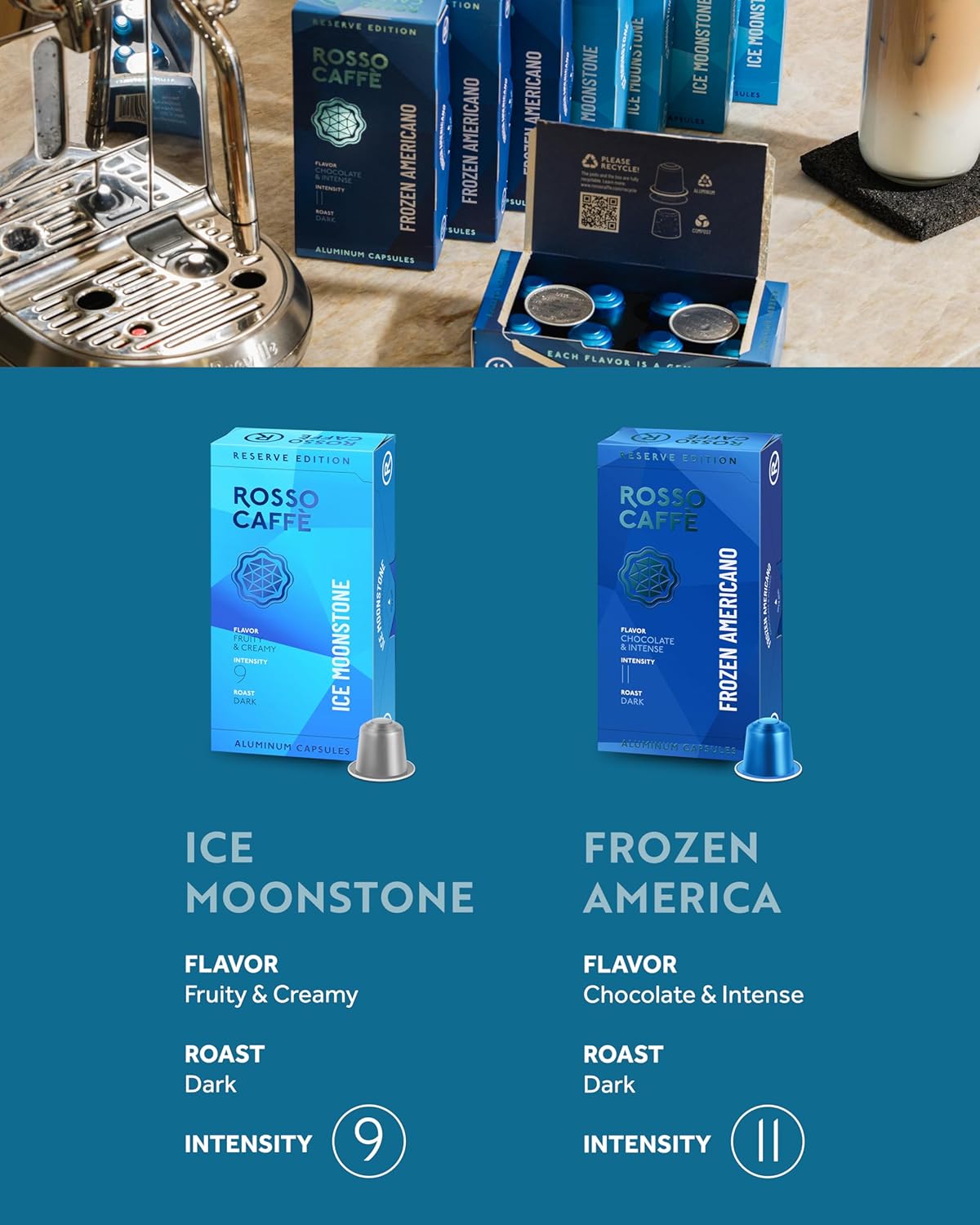 - Reserve Collection 80 Pods Ice Pack - Refreshing Espresso, Perfect for Summer: Chill out with 2 smooth, bold blends crafted for iced coffee lovers. Designed to hold their flavor over ice, these Nespresso Original-compatible pods deliver rich crema and a cool, energizing espresso experience - perfect for hot days.