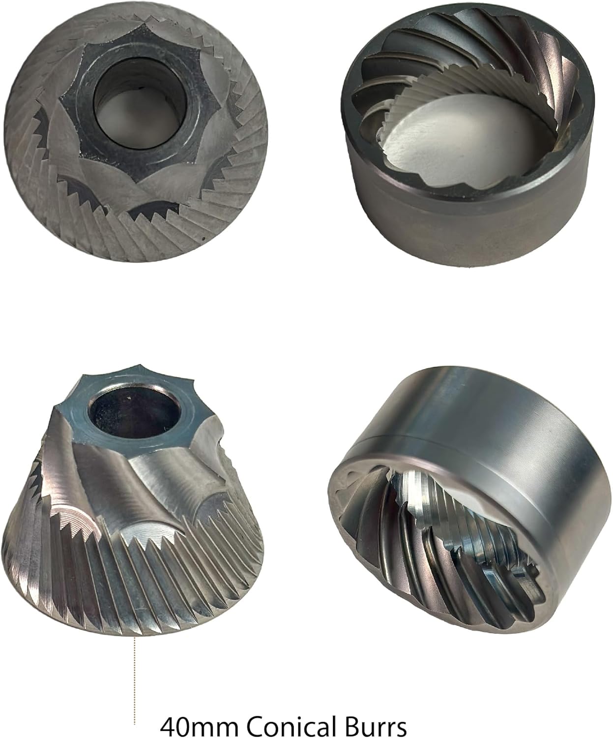 - 【Stainless Steel 40mm Conical Burrs】Comes with stainless steel 40mm conical burrs. It delivers a consistent grind with minimal clumping.