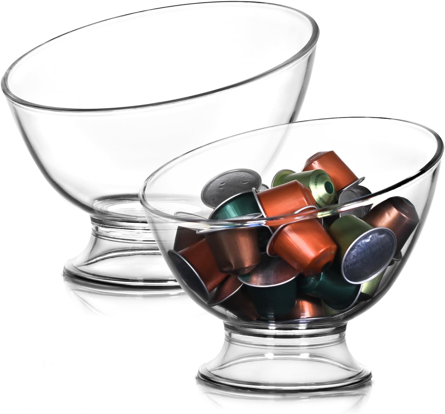 - ELEGANT DESIGN: The plastic holder bowl features a footed base, smooth edges and glass-like finish, making it a simple, functional, and decorative accessory to any kitchen, home or office breakroom