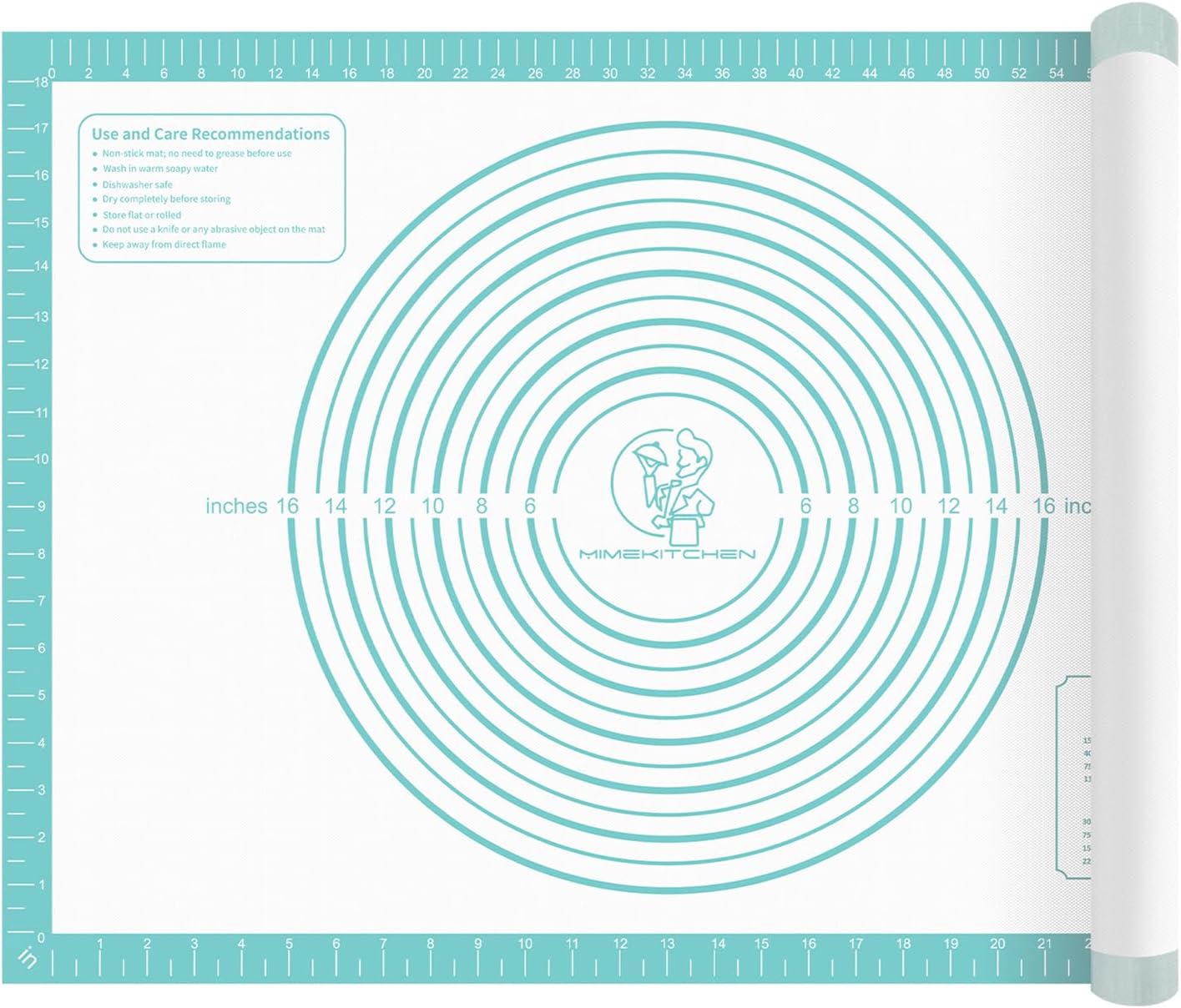 - 【Durable Silicone Baking Mat】: Multi-layers of silicone and fiberglass to reinforce the mat makes our silicone pastry mat more durable than other regular baking pastry mat. It won’t rip or roll up at the edges, and very hard to crinkle or slide around as you roll the dough. Silicone mat to serve you for years and years or even more; a must-have accessory for any kitchen.
