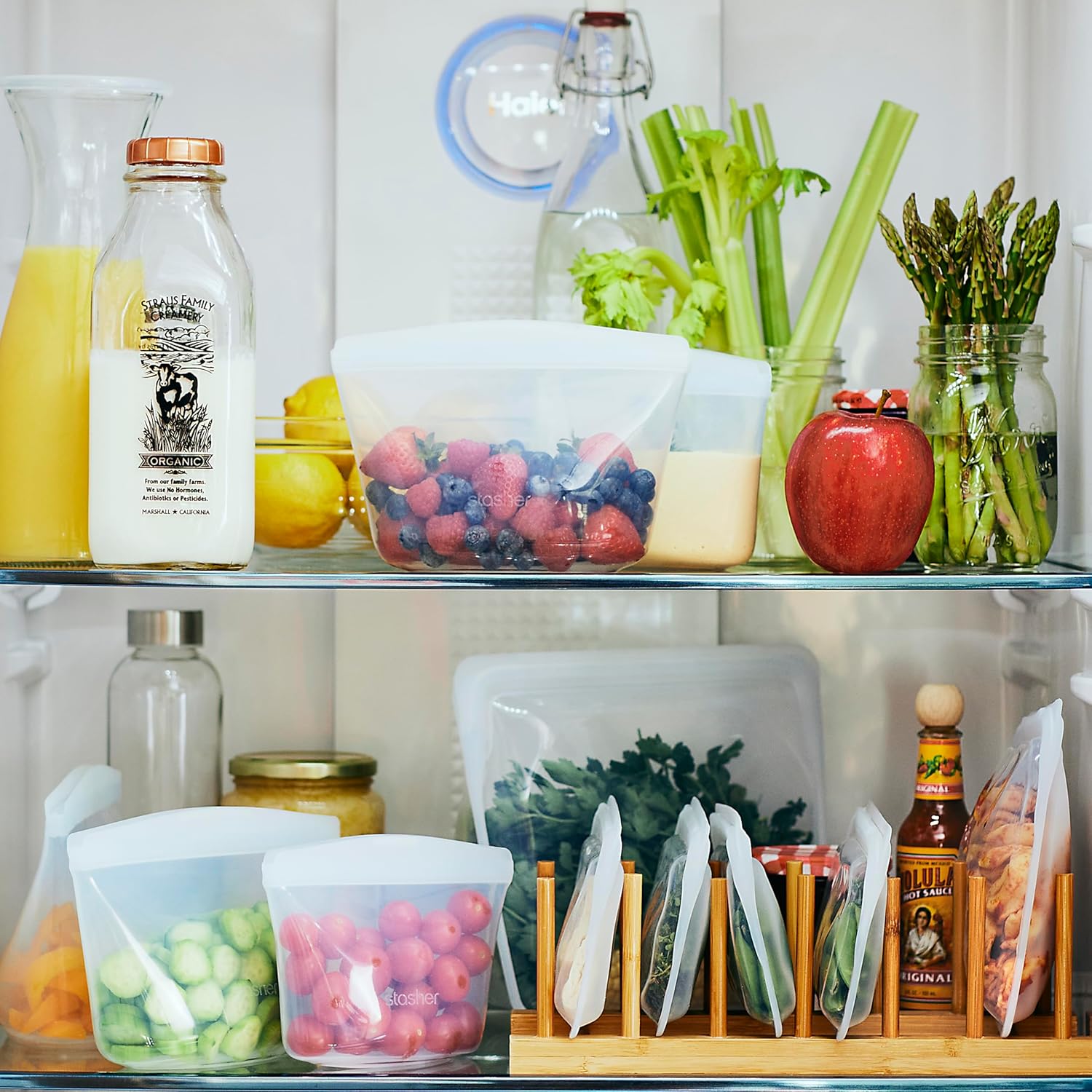 - REUSABLE, REWASHABLE CONTAINERS: Stasher silicone reusable storage bags make it easy to ditch single-use plastic and meet endless household needs. Safe for the dishwasher, microwave, oven (up to 425°F), and more.