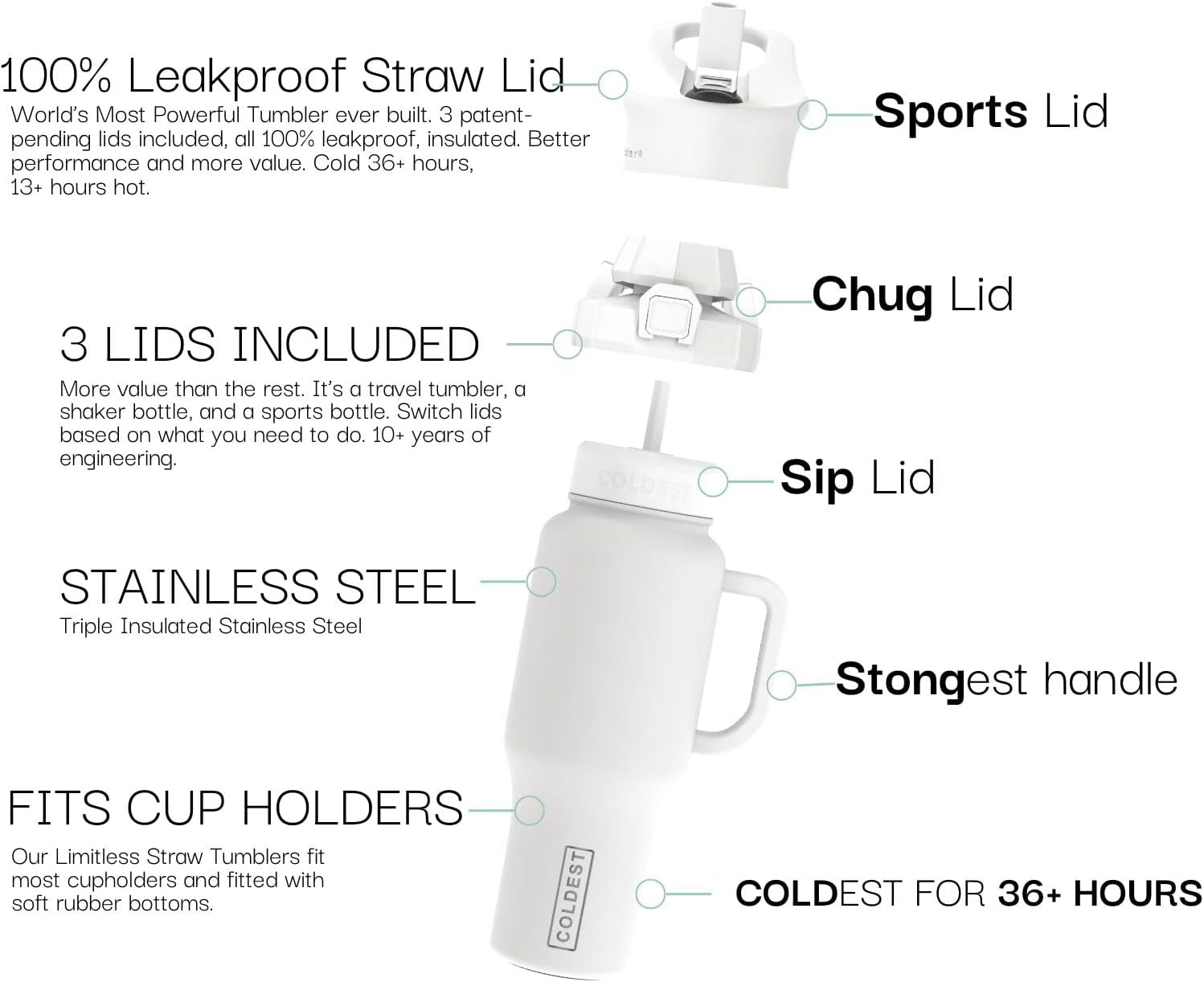 - Cup-Holder Friendly & Stylish Choices: Designed to fit 99% of cup holders, Coldest leakproof tumbler comes in 36oz and 46oz sizes and 40+ color variations, so you can sip in style anytime, anywhere.