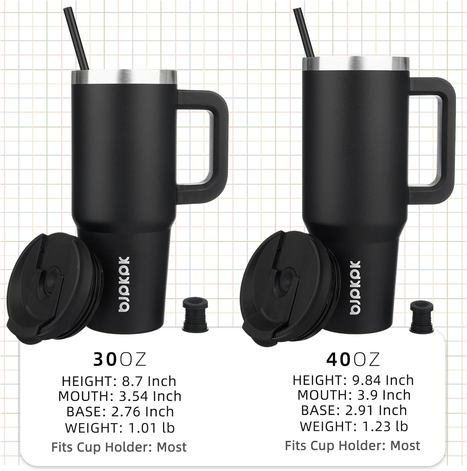 - Cupholder Friendly Travel Mugs With Handle: The Insulated Cups Has a Narrow Bottom And A Wide Mouth Fits Most Cup Holder In Car, With A Comfortable Ergonomic Silicone Handle And Two Reusable Straw To Use More Portable, You Can Stay Sipping From Your Essential Hydration Companion, Even On Your Busiest Days
