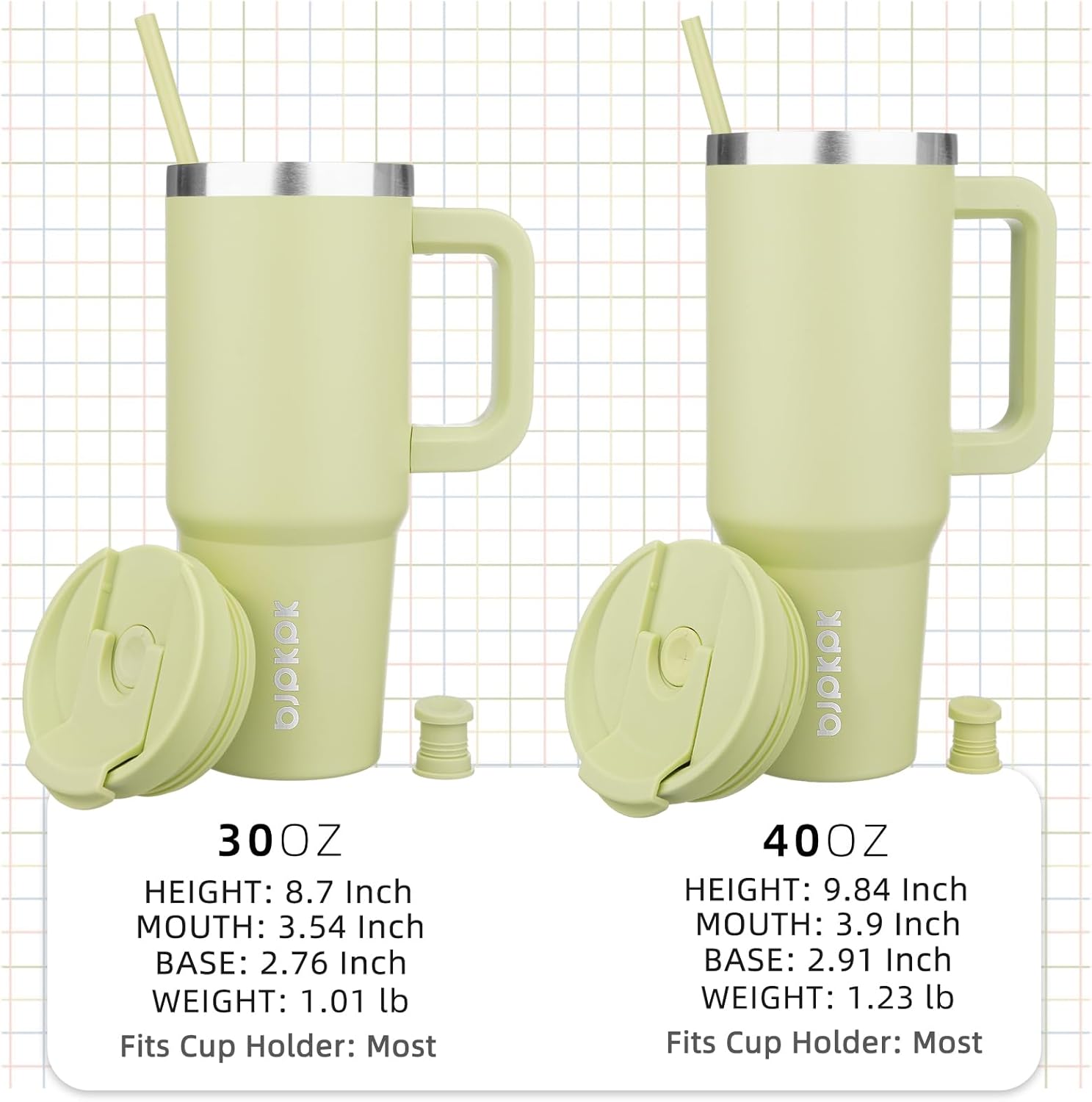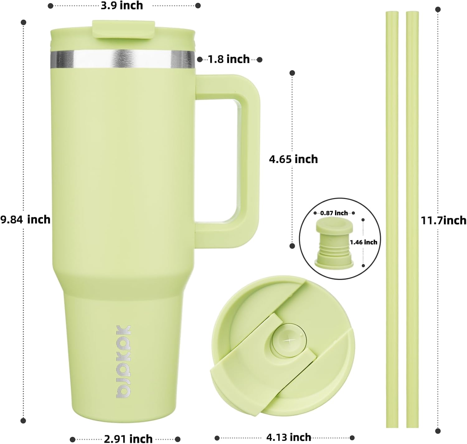 BJPKPK Tumbler With Handle 40 oz Stainless Steel Insulated Tumbler With Lid And Straw For Water Or Ice Coffee,Macaron Green