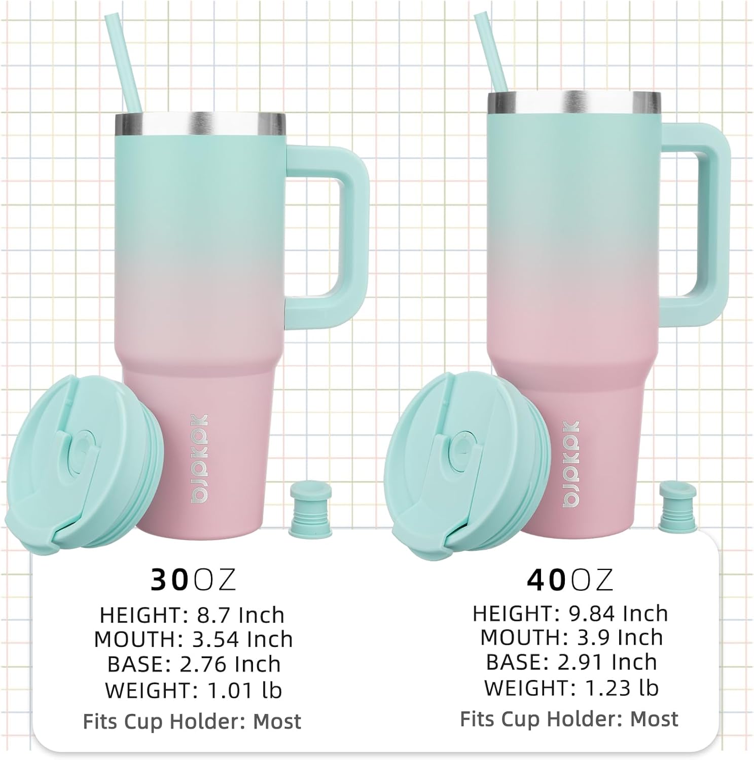 - Cupholder Friendly Travel Mugs With Handle: The Insulated Cups Has a Narrow Bottom And A Wide Mouth Fits Most Cup Holder In Car, With A Comfortable Ergonomic Silicone Handle And Two Reusable Straw To Use More Portable, You Can Stay Sipping From Your Essential Hydration Companion, Even On Your Busiest Days