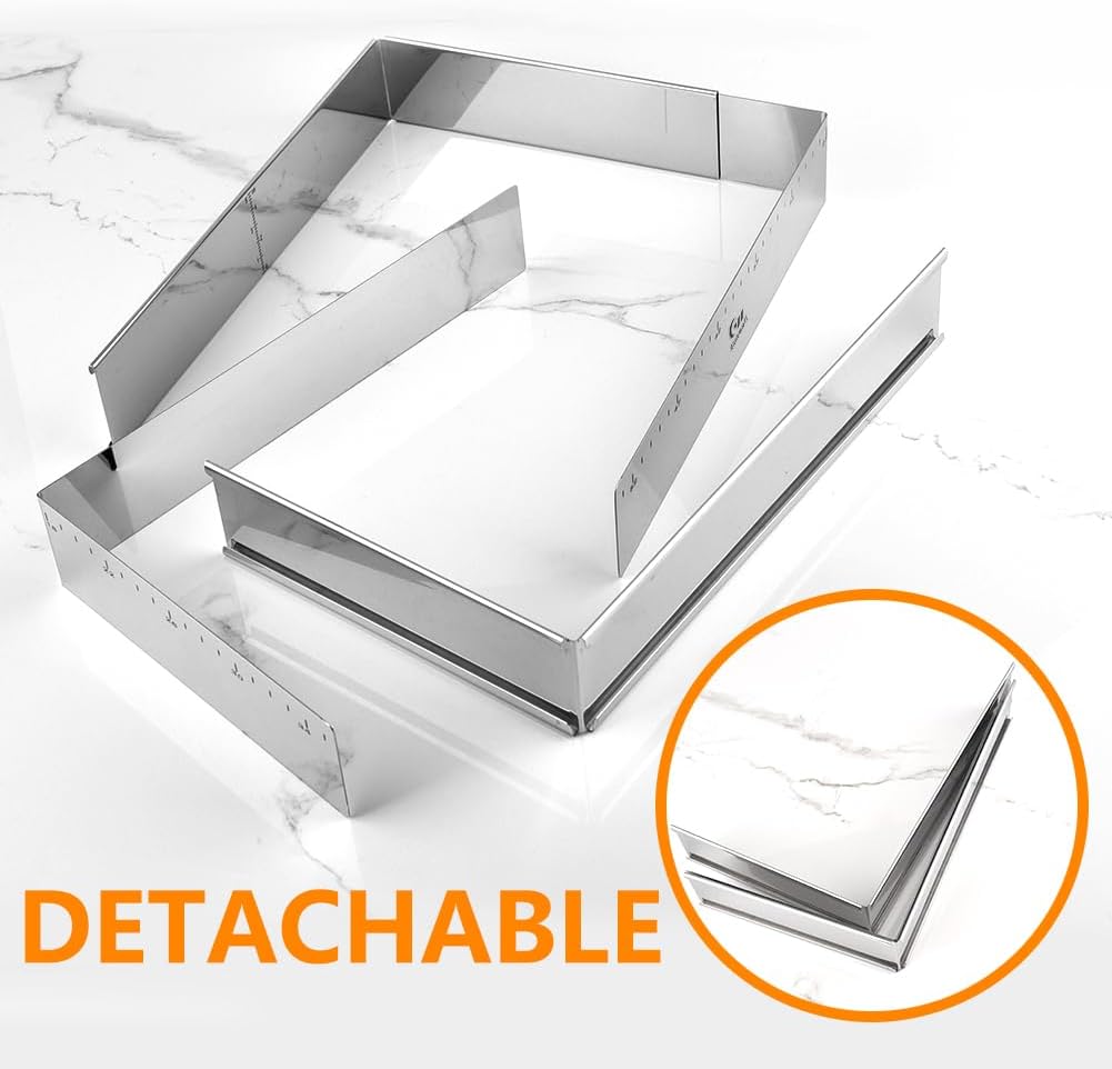 Guowall Extensible Stainless Steel Square Cake Mold Heavy Duty Adjustable Mousse Ring Rectangle Shaped Detachable Mousse Cake Cutter, Pastry DIY Baking Tool - 10 * 7in